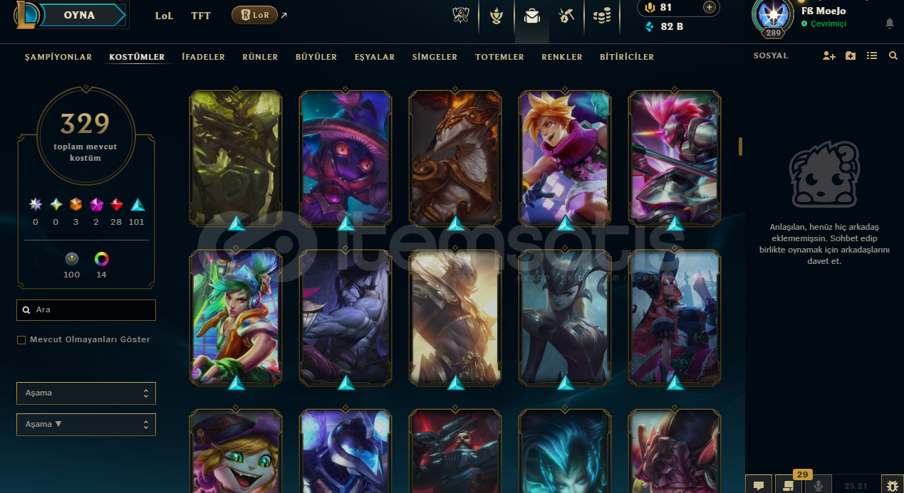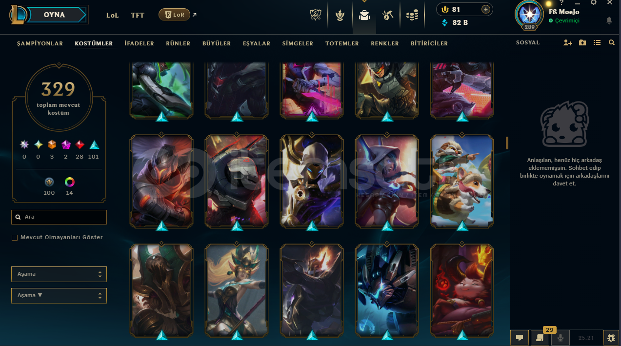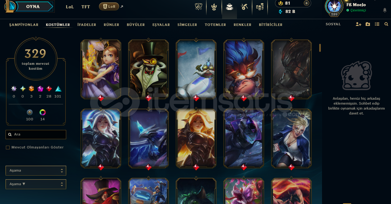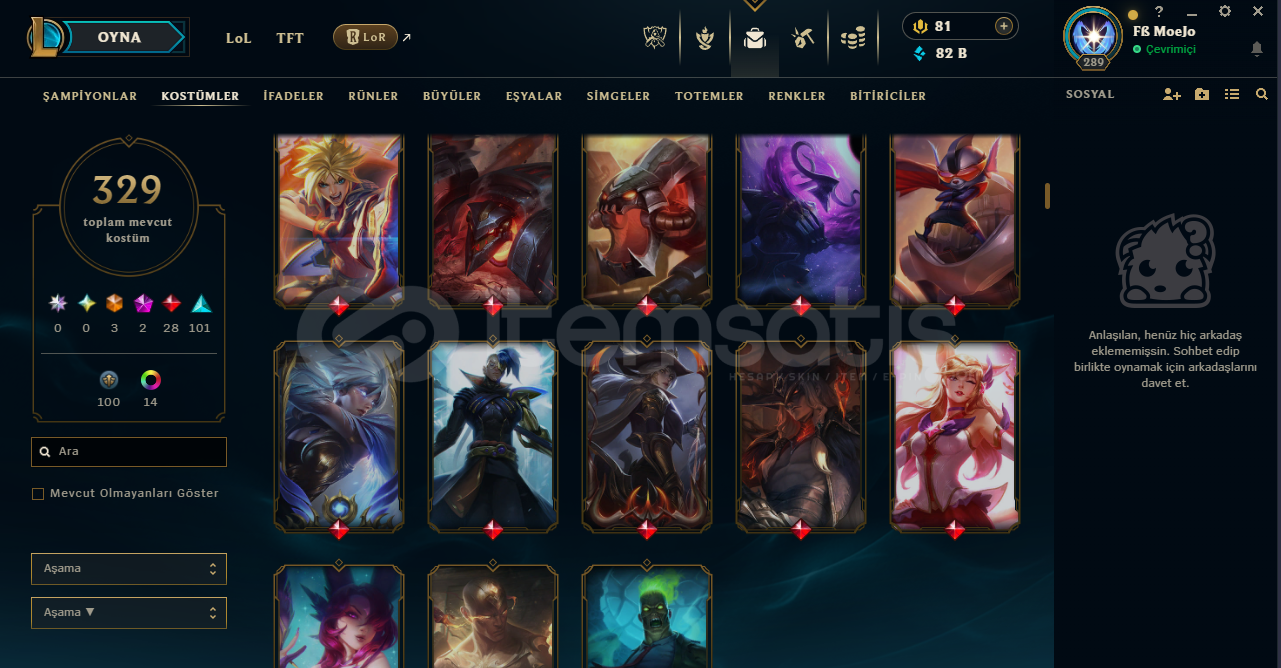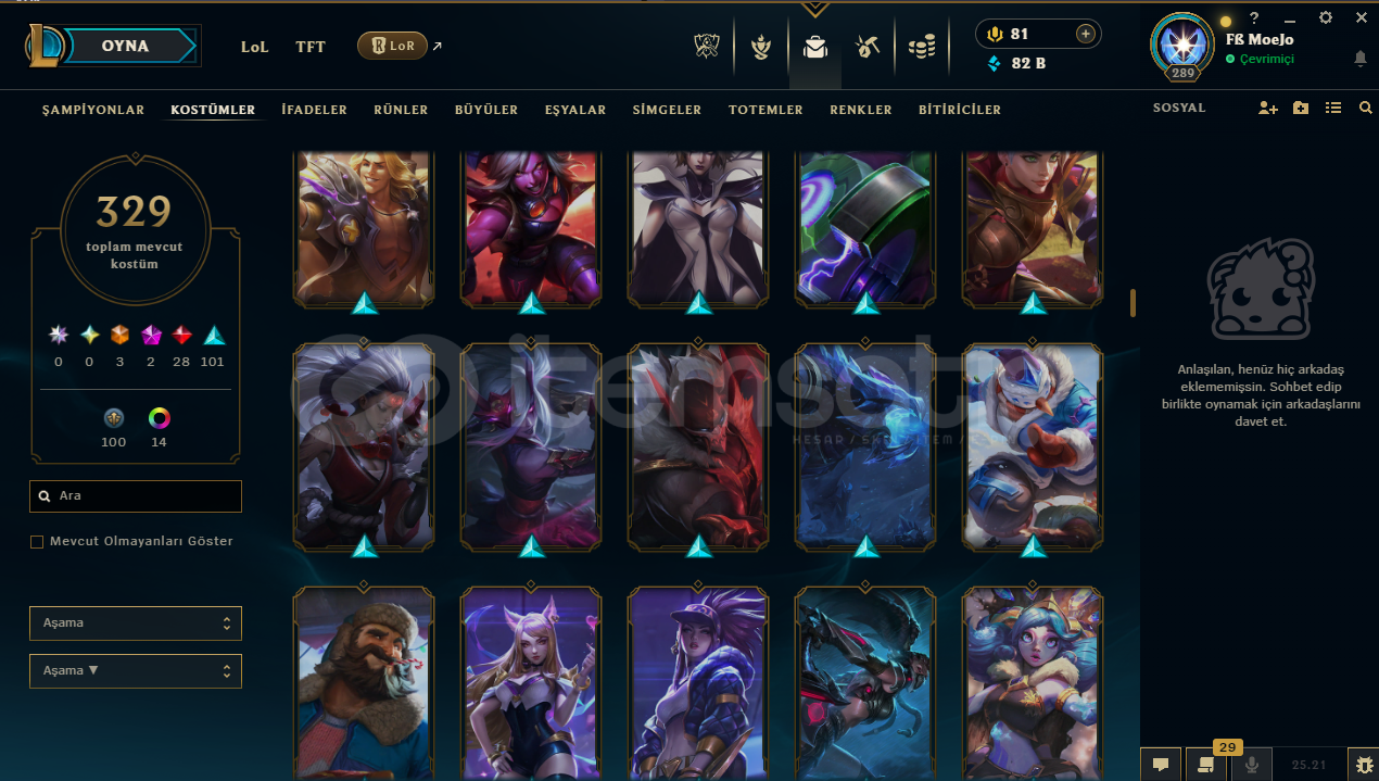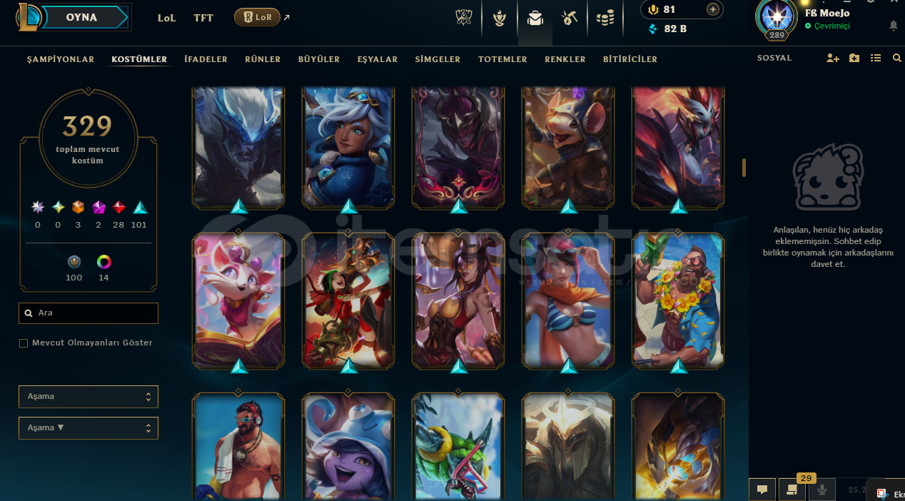 hesapta tüm karakterler açık 329 kostüm 4.takdir seviyesi vardır