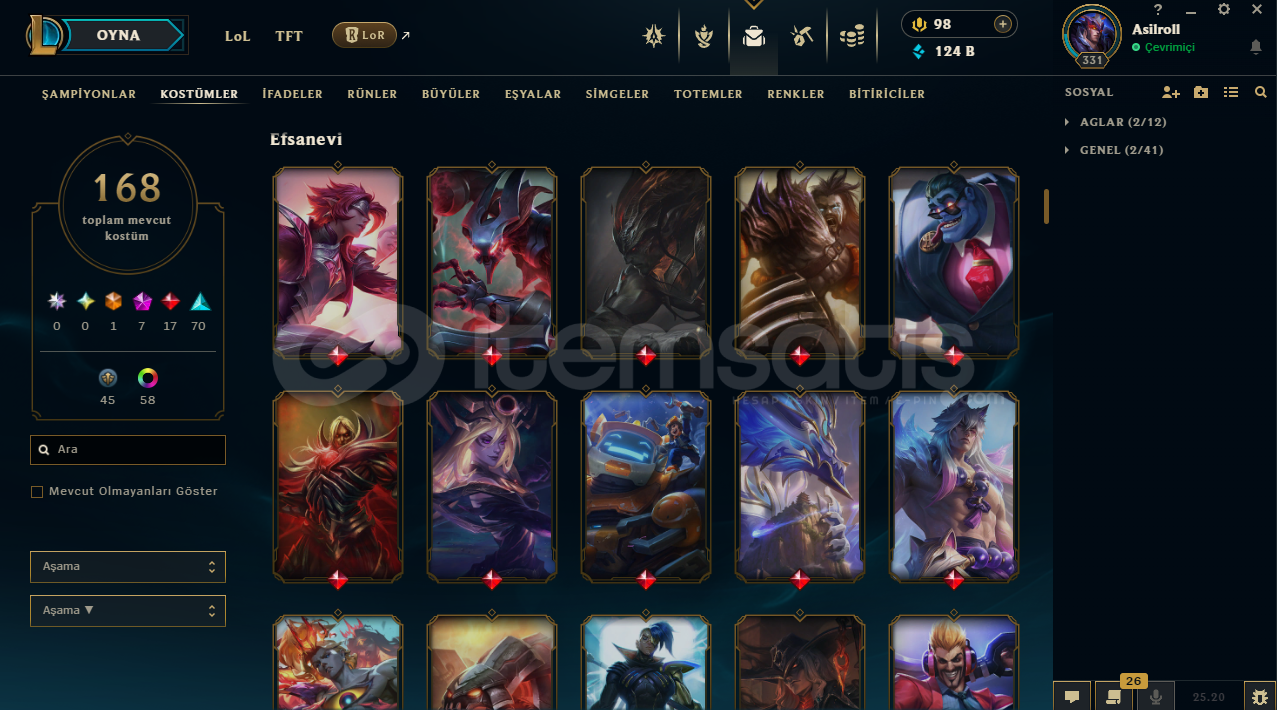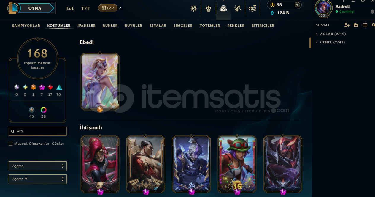 330LVL 170 SKİNLİ 124K MAVİ ÖZLÜ DOLU HESAP