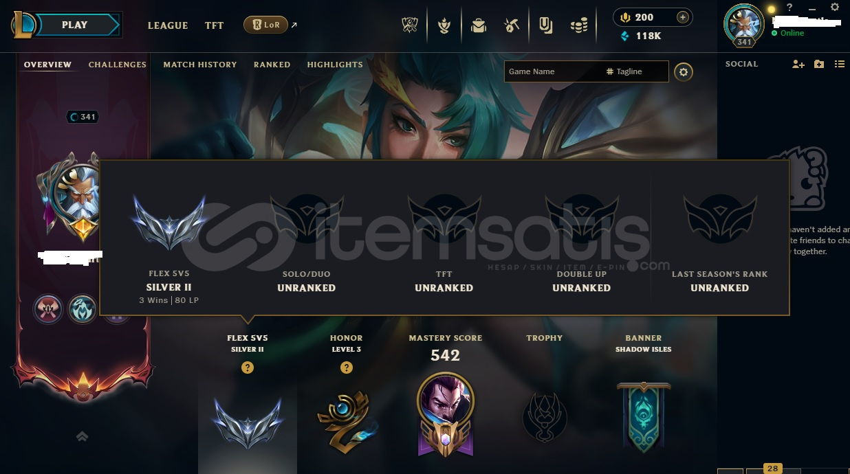 Merhaba Hesaptaki kostümler görselde verilmiştir.Takdir seviyesi 3 Takdir ödüllerini alabilir ve troll,toxic oldukça az gelir.Dereceliye hazır durumdadır. Mevcut Rankı özlediğiniz severek istediğiniz gumus 2.Tum herolar acikİsim değişim hakkı mevcuttur. İstediğiniz nicki kullanabilirsiniz.Bizde ticaret adam gibi yapılır. YAYINCIDAN SATILIK!Adınıza yeni bir mail adresi oluşturulara...