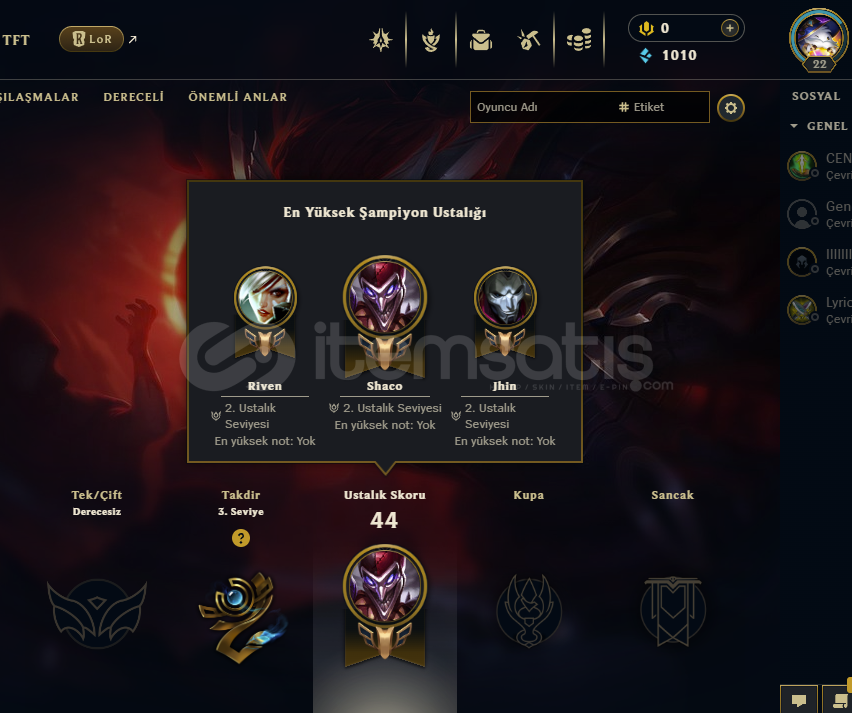 4 Kostümlü 22 Level TR Hesapilanla ilgili tüm bilgiler ilan görsellerinde bulunmaktadır.