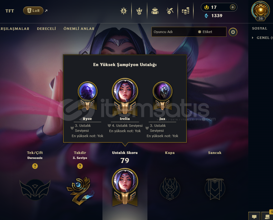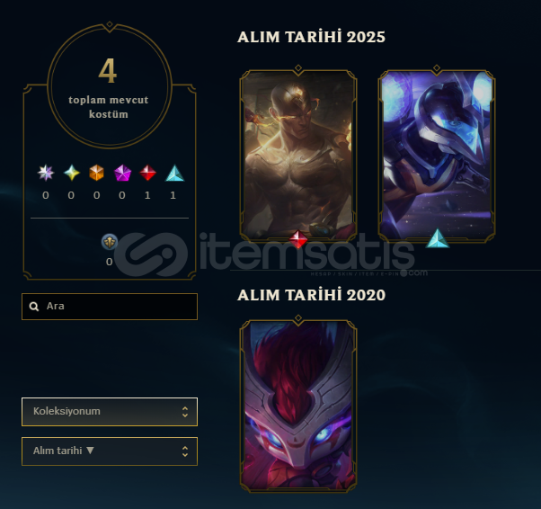4 Kostümlü 36 Level TR HesapHesapla ilgili tüm ayrıntılar ilan görsellerinde bulunmaktadırHesabın op.gg link https://op.gg/tr/lol/summoners/TR/Shrimpdesune-TR1