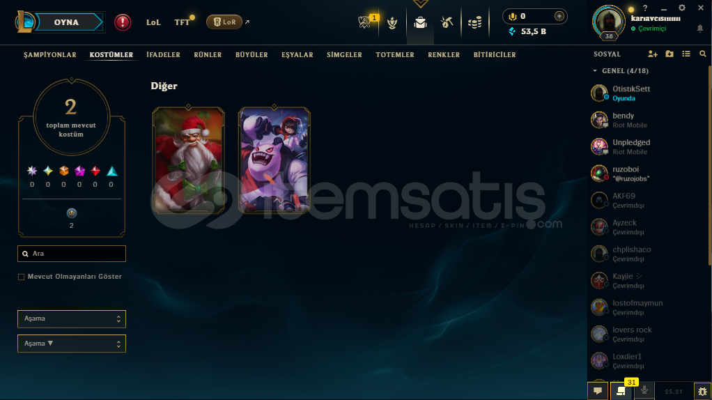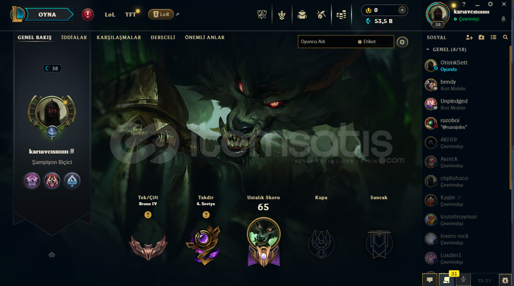 HESAPTA 53K MAVİ ÖZ VARDIR 3 KOSTÜM VARDIR 1 TANESİ EVSANEVİDİR TAKDİR 4. SEVİYEDİR 12 SEVİYE WARWİCK