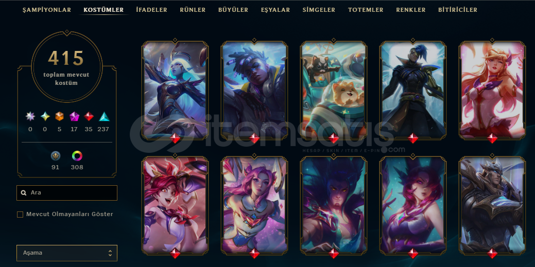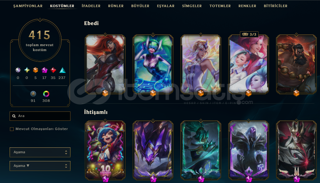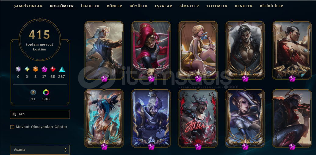 ***Hesapta hiç ban yenmedi son 4 sezondur takdir 5 zaten tüm takdir kostümlerine,renklerine ve totemlerine sahip.