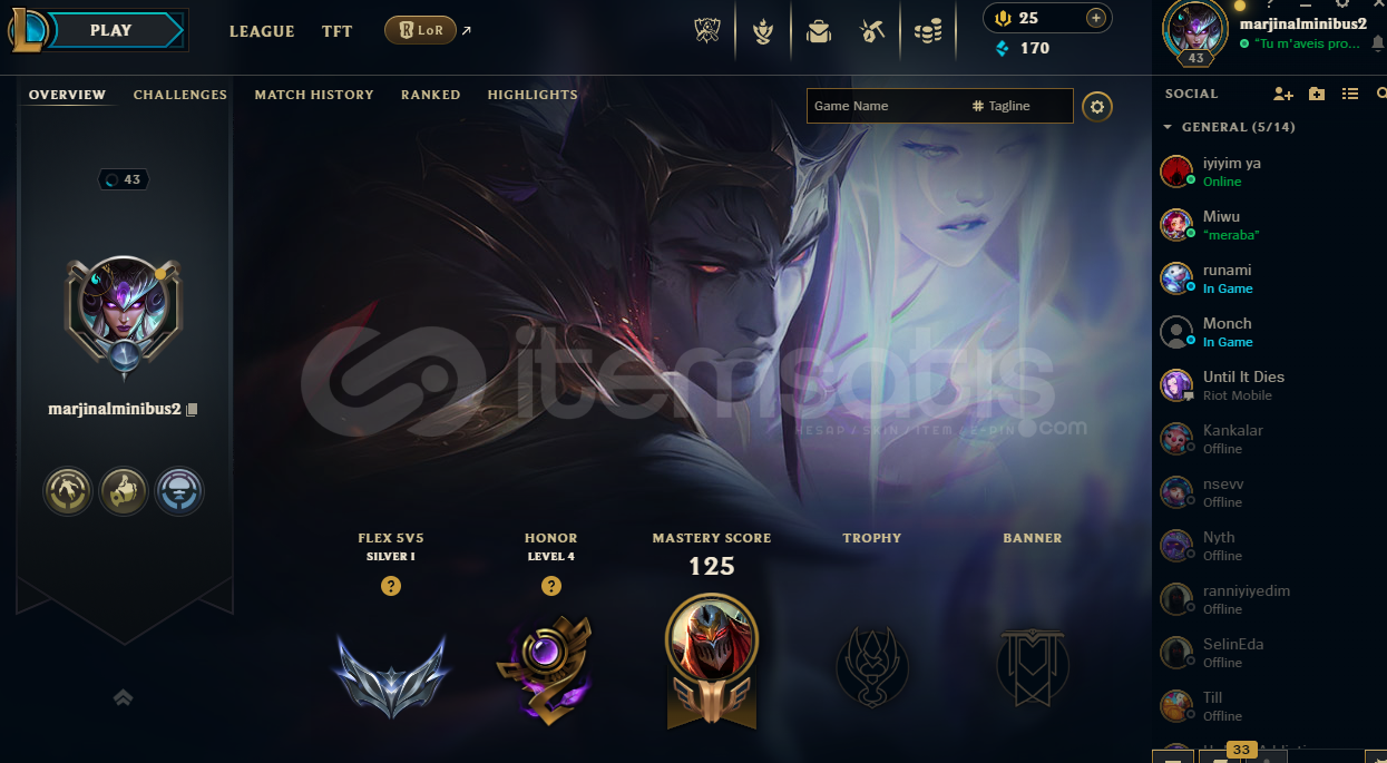 hesapta 11 skin, 59 şampiyon vardır. mail değişimi yapılır.
