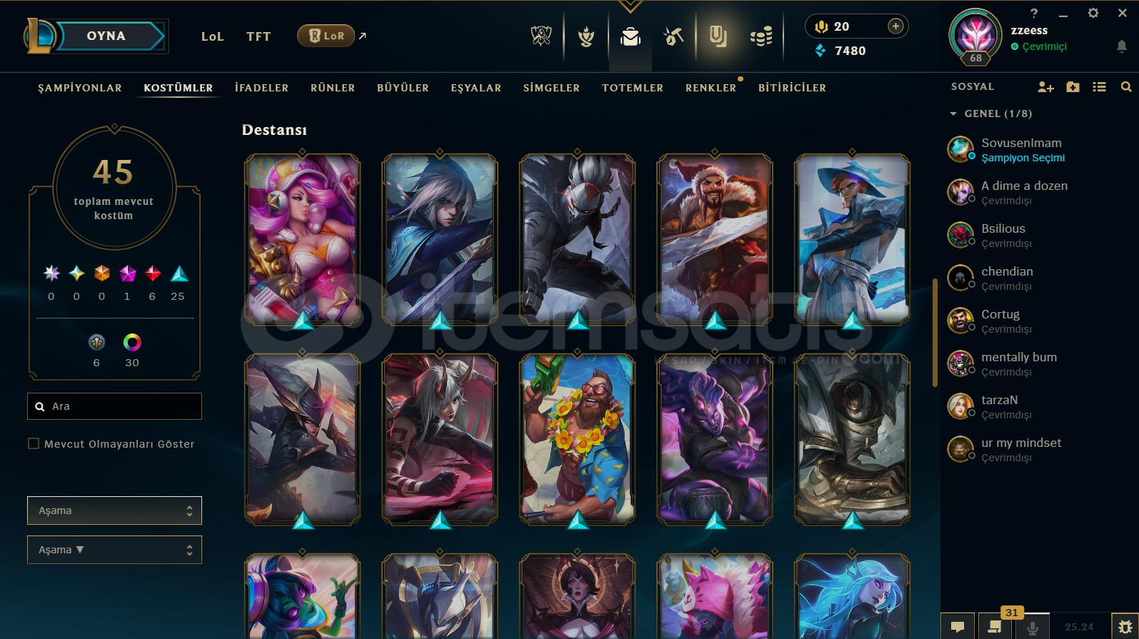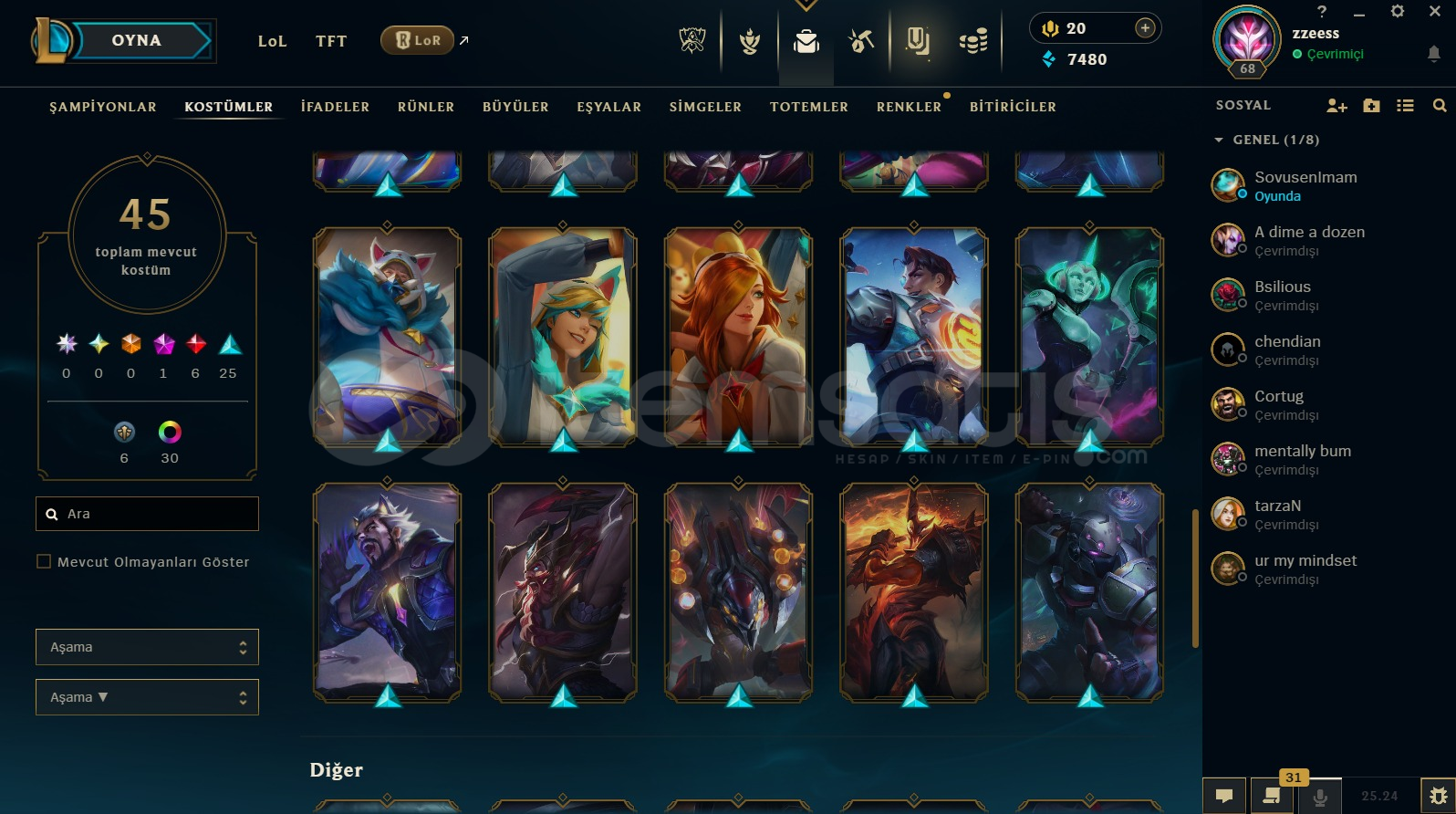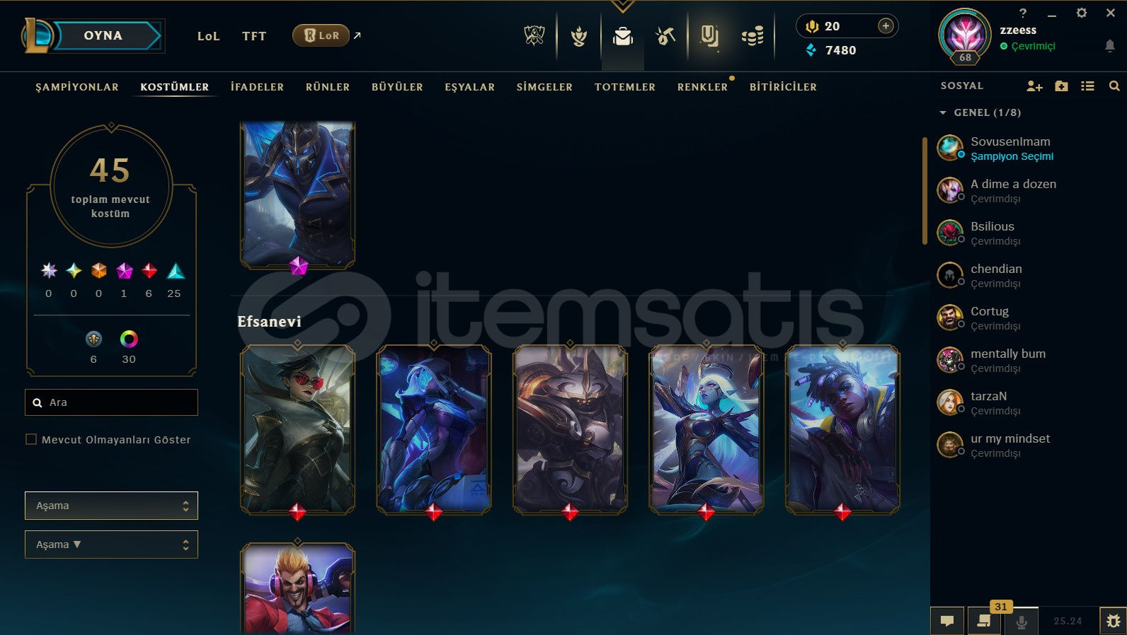 70 hero 45 kostum tr hesap smurf hesaptır mmr iyi durumdaTR HESAP