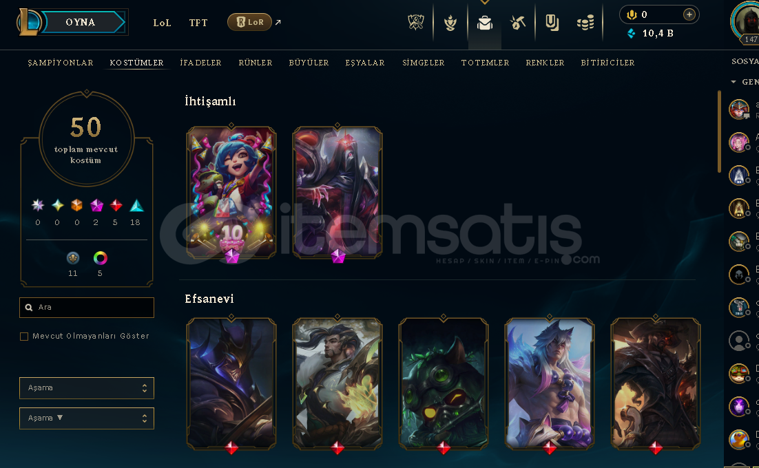 HESAP 147 SEVİYEDİR50 KOSTÜM MEVCUTTUR10 K MAVİ ÖZ BULUNURRANKI ALTINDIRHESABIN MAİL VE TELEFON NUMARASI PATLAKTIR ERİŞİM İMKANSIZDIRALANA HAYIRLI OLSUN:)