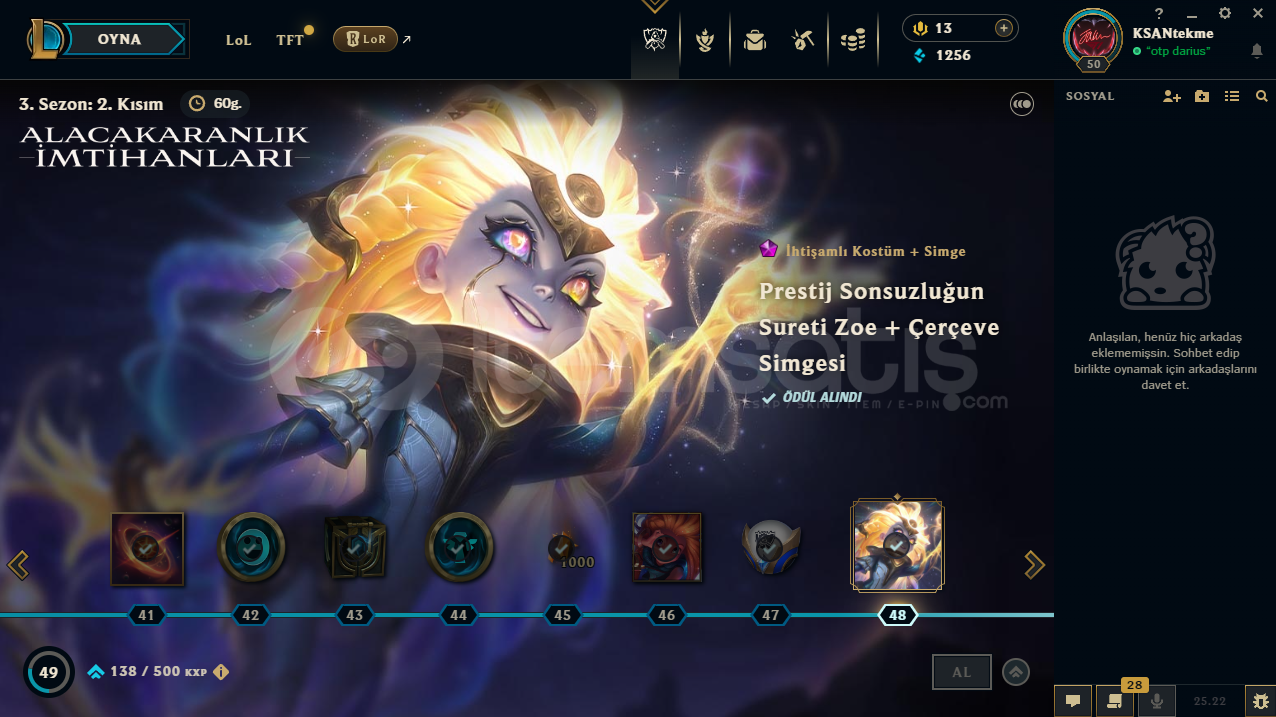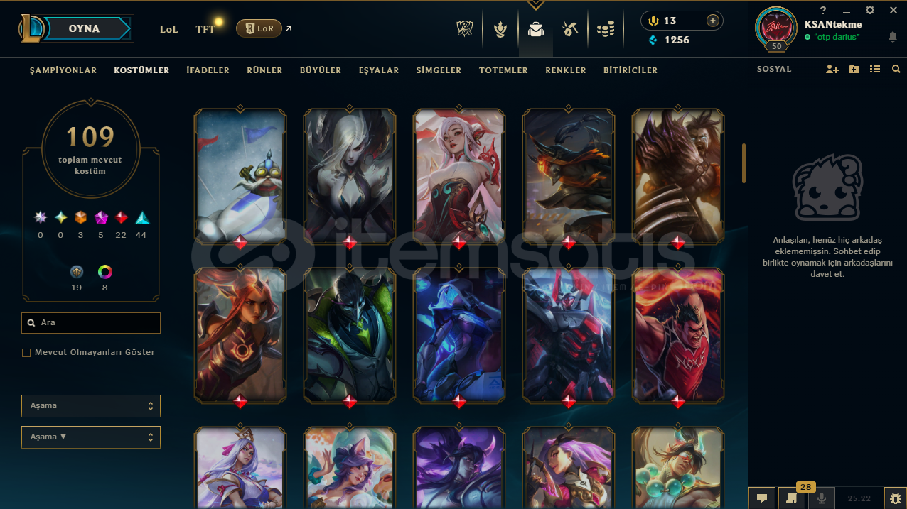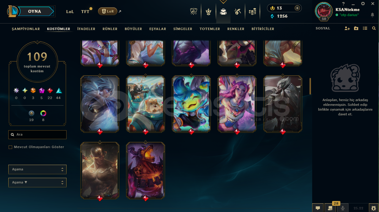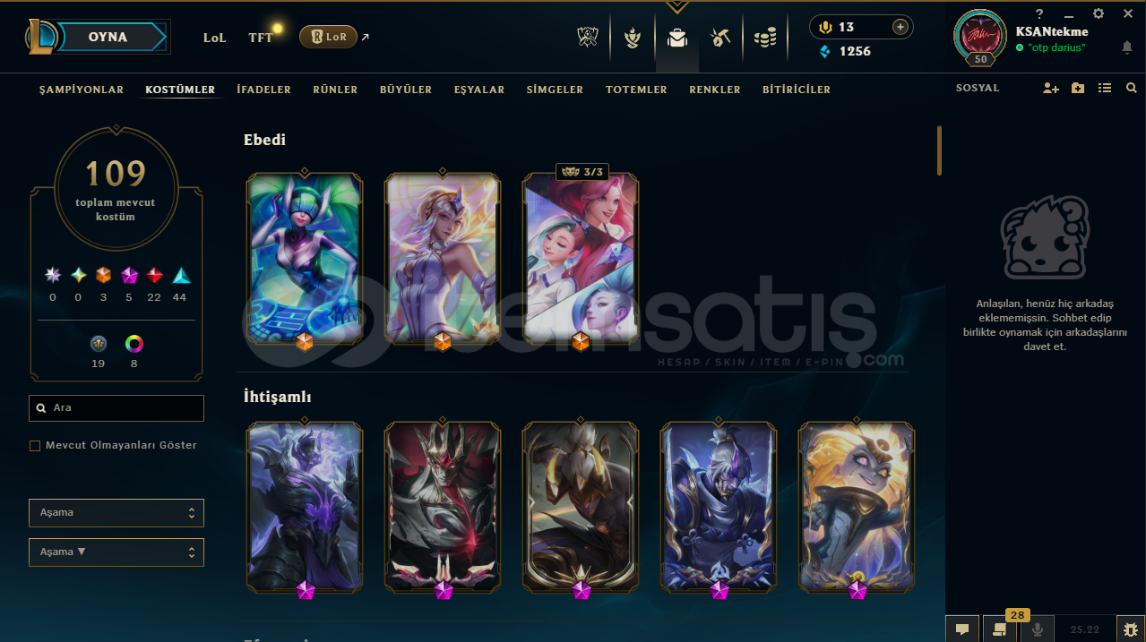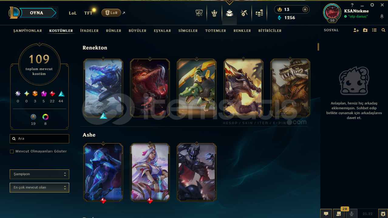 50 seviye efsane 109 kostümlü hesap dolu hesapta 36 ihtişamlı özde var ganimetde 4 tane kostüm vardır ➤DAHA FAZLA LEAGUE OF LEGENDS HESAPLARI İÇİN PROFİLİMİ ZİYARET EDİNİZ.