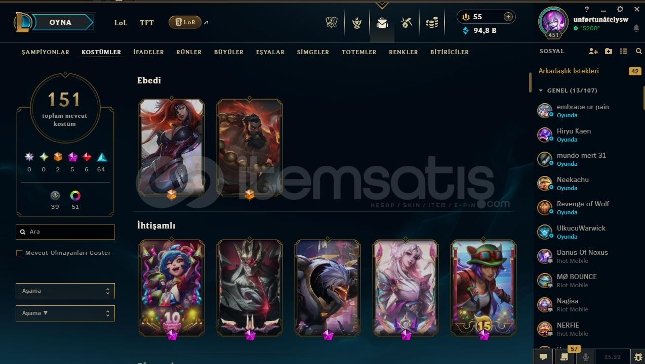 SkyeShop Güvencesiyle Anında TeslimatHESAP İÇERİĞİ;-451 LEVEL-151 KOSTÜM-FULL HERO-94,8 BİN MAVİ ÖZMail;-var, kendi mailinize devredilecekRank;-tek çift zümrüt-esnek elmas 2Server;-TR