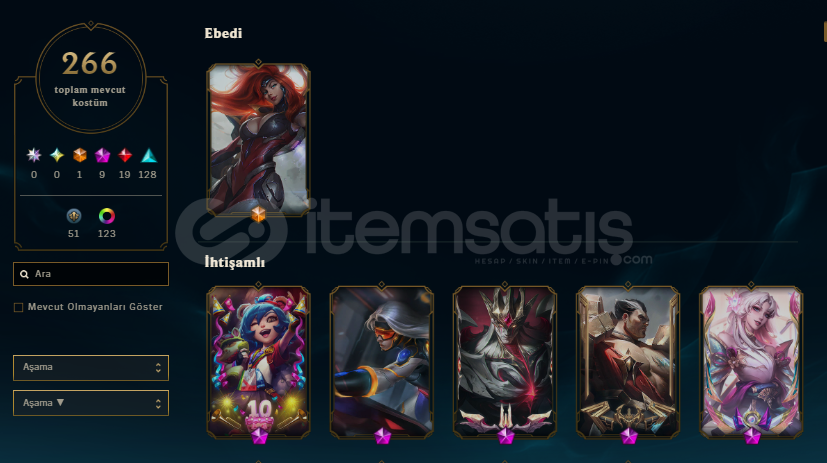 HESABIN İLK SAHİBİYİM KOSTUMLER TATMİN EDİCEK DURUMDA HER KORİDOR İÇİN FARKLI FARKLI ŞAMPİYONLARDAN İYİ KOSTÜMLER BULUNMAKTA