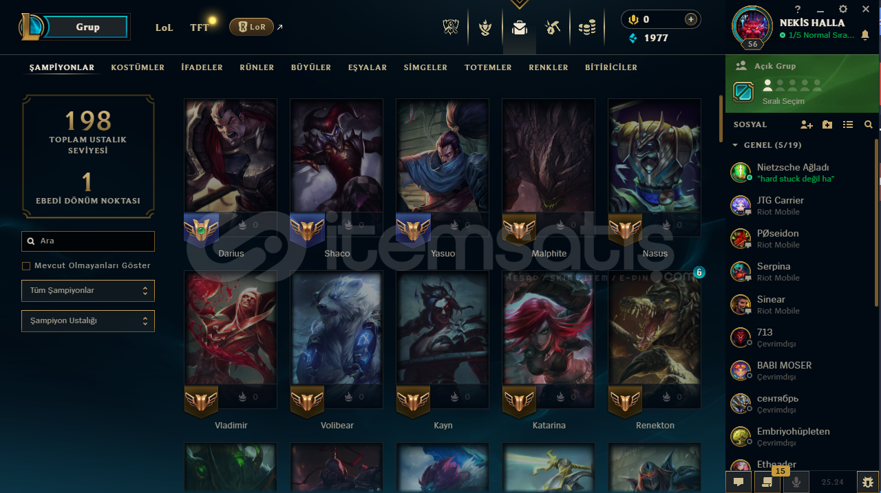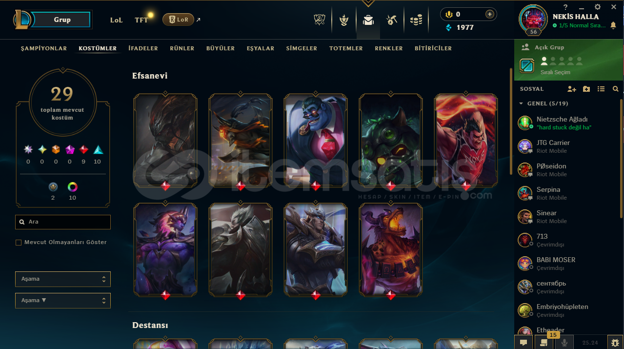 Hesapta garantili kostümler aşağıda toplam 29 kostümGecenin Kılıcı YasuoGölge Dövmeli MasterOmega Timi TeemoZebani Nasus%100 TR & Mail DeğişenÜrün Teslimi Sonrası Tüm Sorumluluk Yeni Sahibindedir