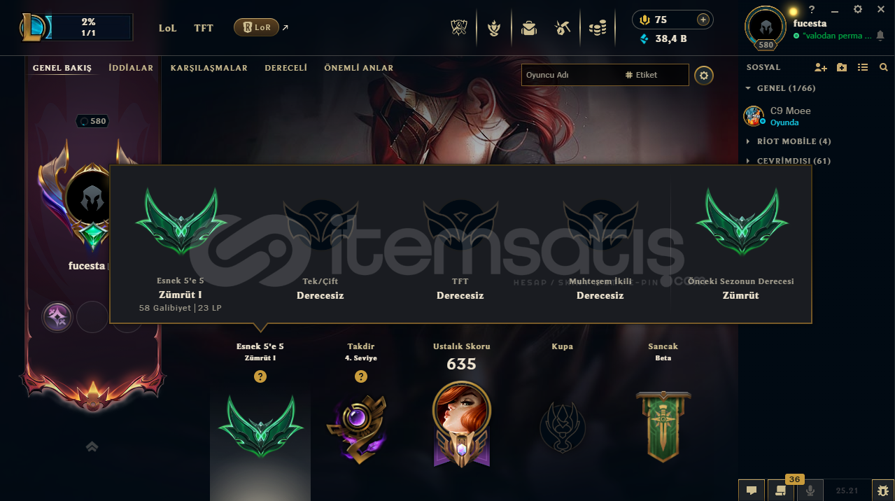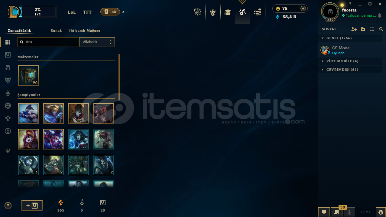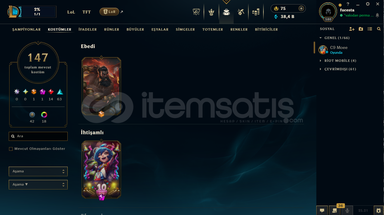 580 lvlfull champ147 skin4 lvl taktir20 hex kutusu