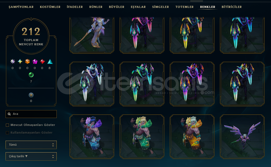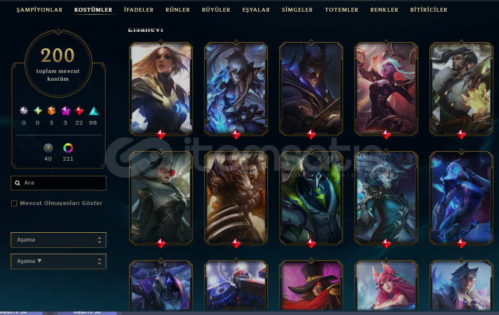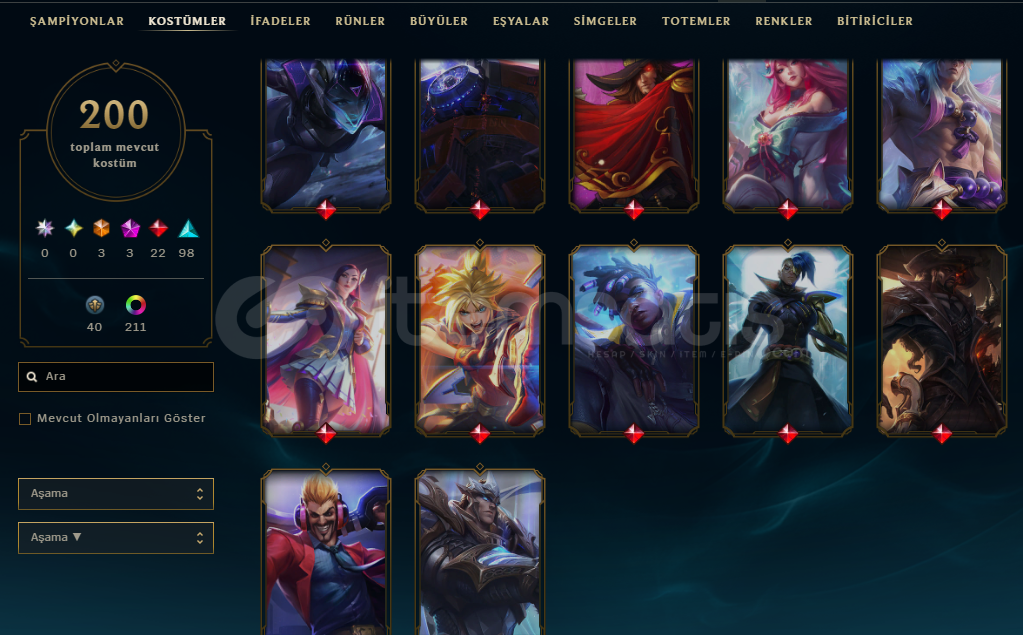 Hesabım 2016den beri el emeğidir kendi hesabımdır ganimette 14bin turuncu öz vardır 25 adet açılmamış kostüm vardır zed otp oldugum için neredeyse tüm kostümler açıktır prestij kod adı zed kostümü dahil 212 adet renk vardır zaten bol bol dopdolu bir hesaptır yasuo kostümleri kata kostümleri ekko kostümleri vs doludur alanı üzmez şanslı bir hesaptır :) herşeyini teslim edeceğim.