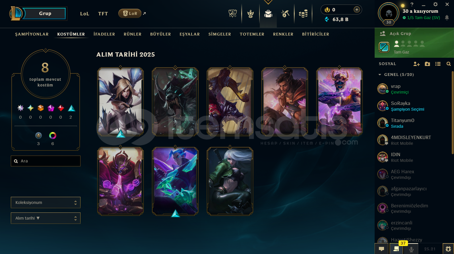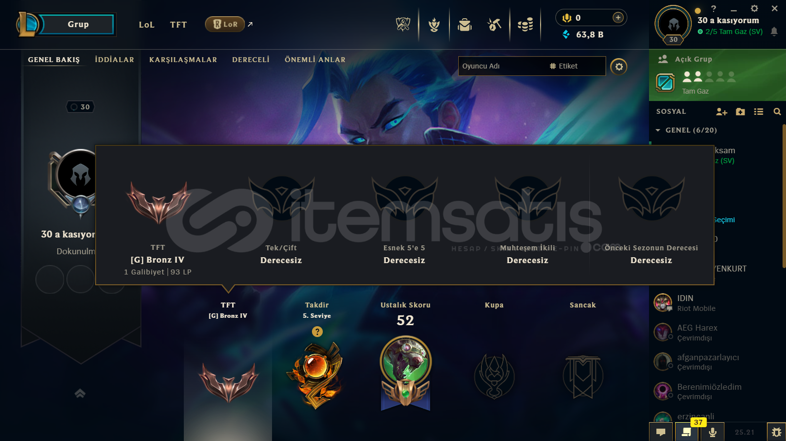 -Hesabın rankı açık değildir (unranked)-30 level-8 kostüm-Takdir Seviyesi 5 -6 Renk-60k mavi öz