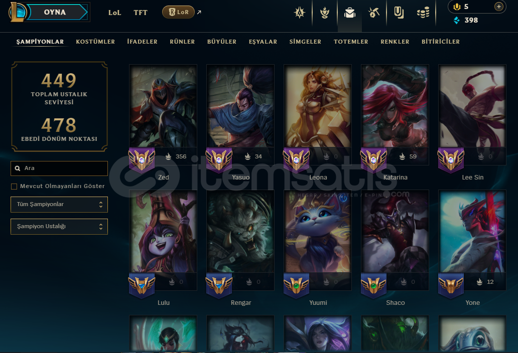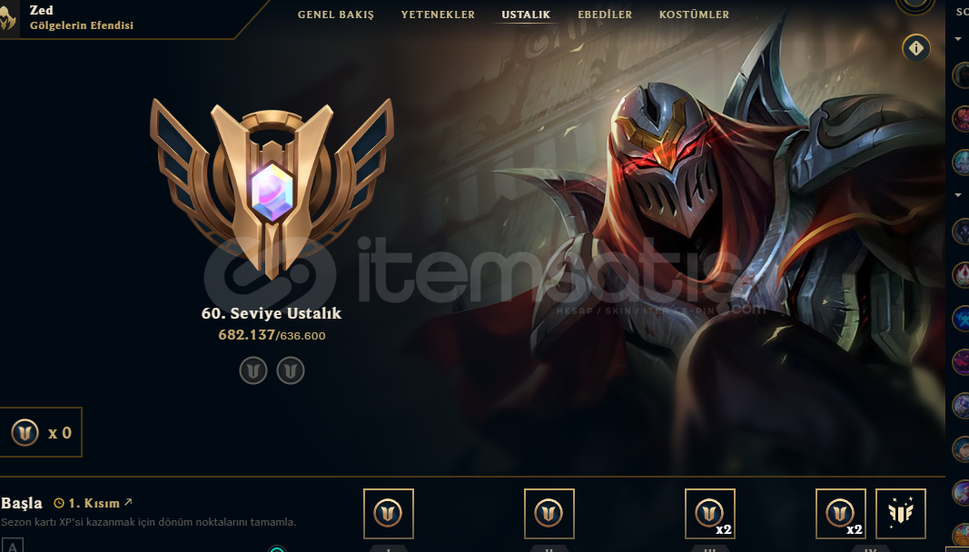 ZED Leona Yasuo Katarina Lee sin 100k üstü