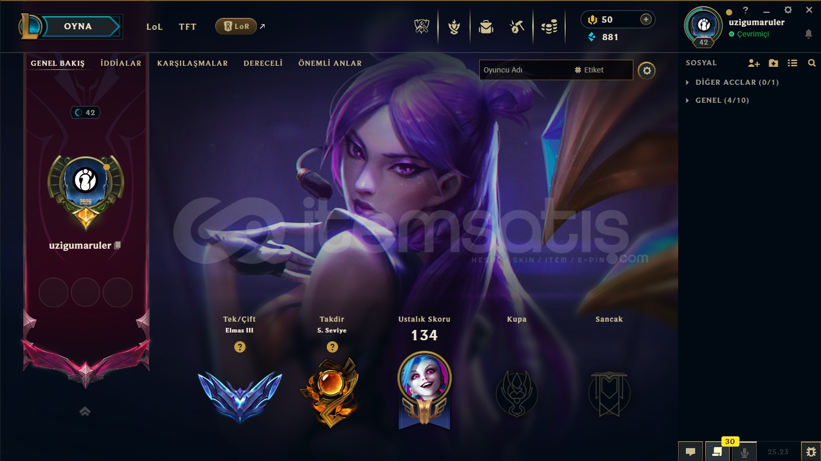 Merhaba satmış olduğum ilanlardan bakabilirsiniz, challenger master diamond gibi hesaplarım var ve her birini temiz kullandım afk banı dahil hiçbir ban yememiştir takdir 5 +30 puan veriyor winlenirse lose alırsanız -10 gidiyor