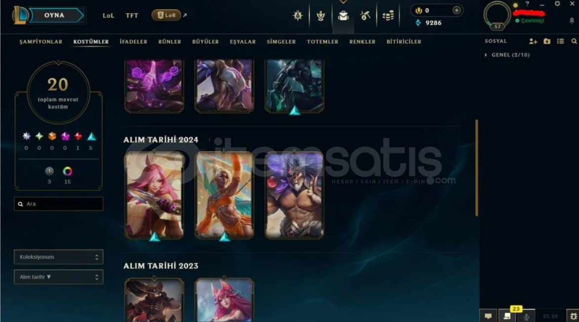 Hesabın içerisinde 20 skin mevcut, 57 seviye'dir.