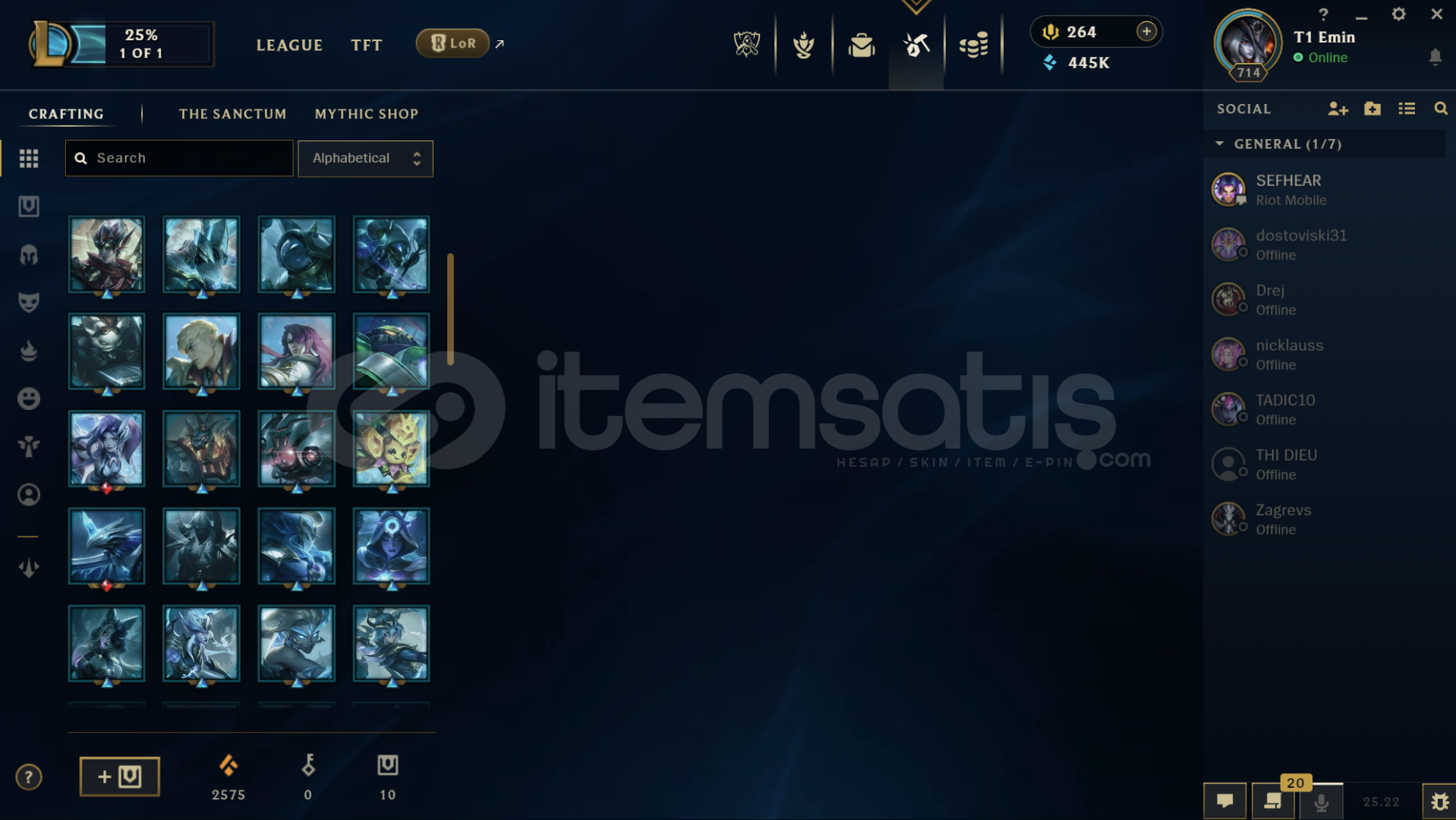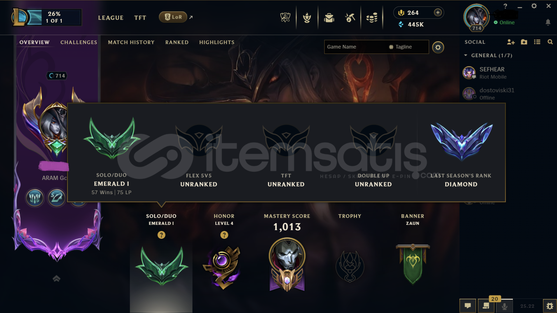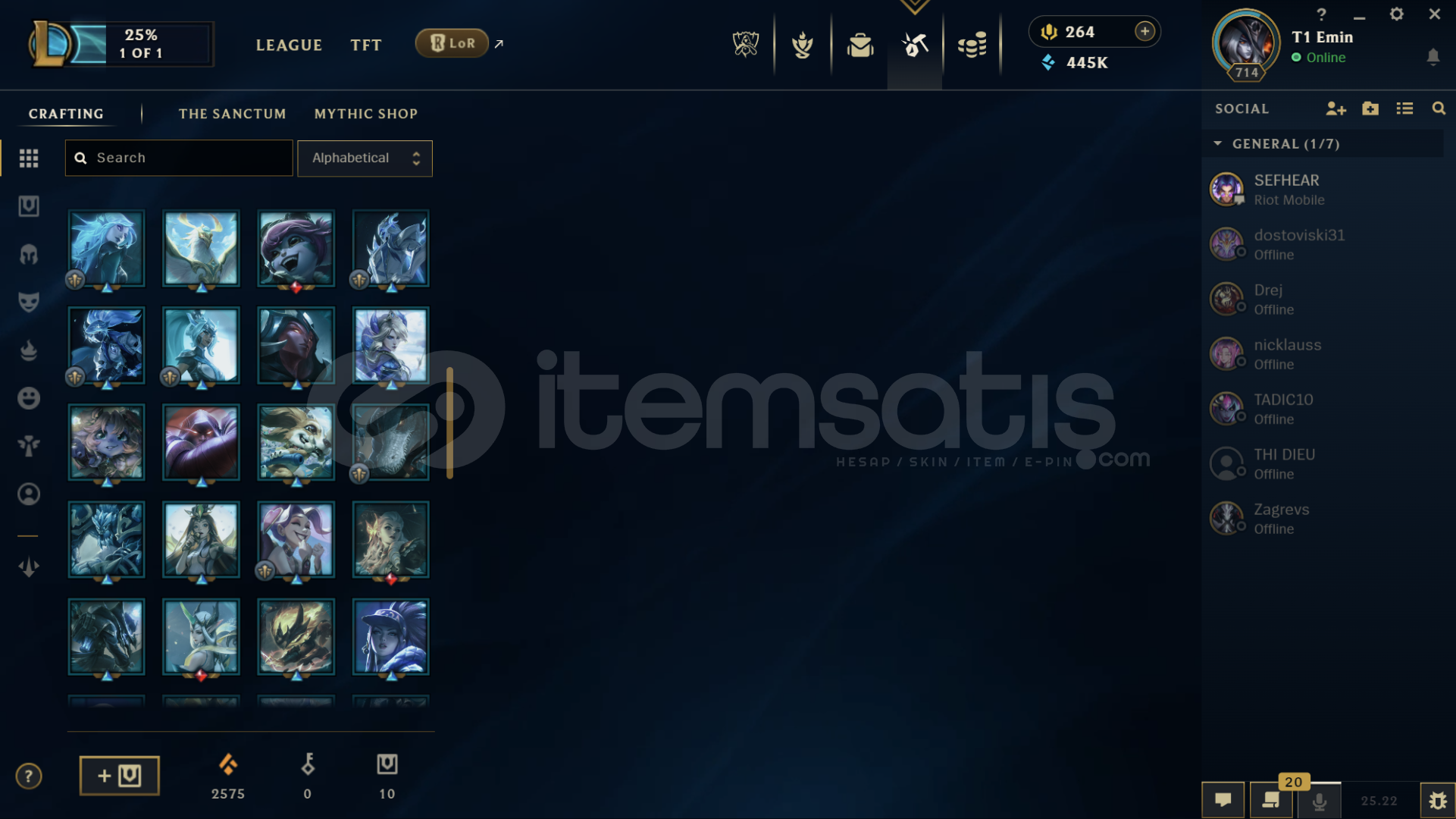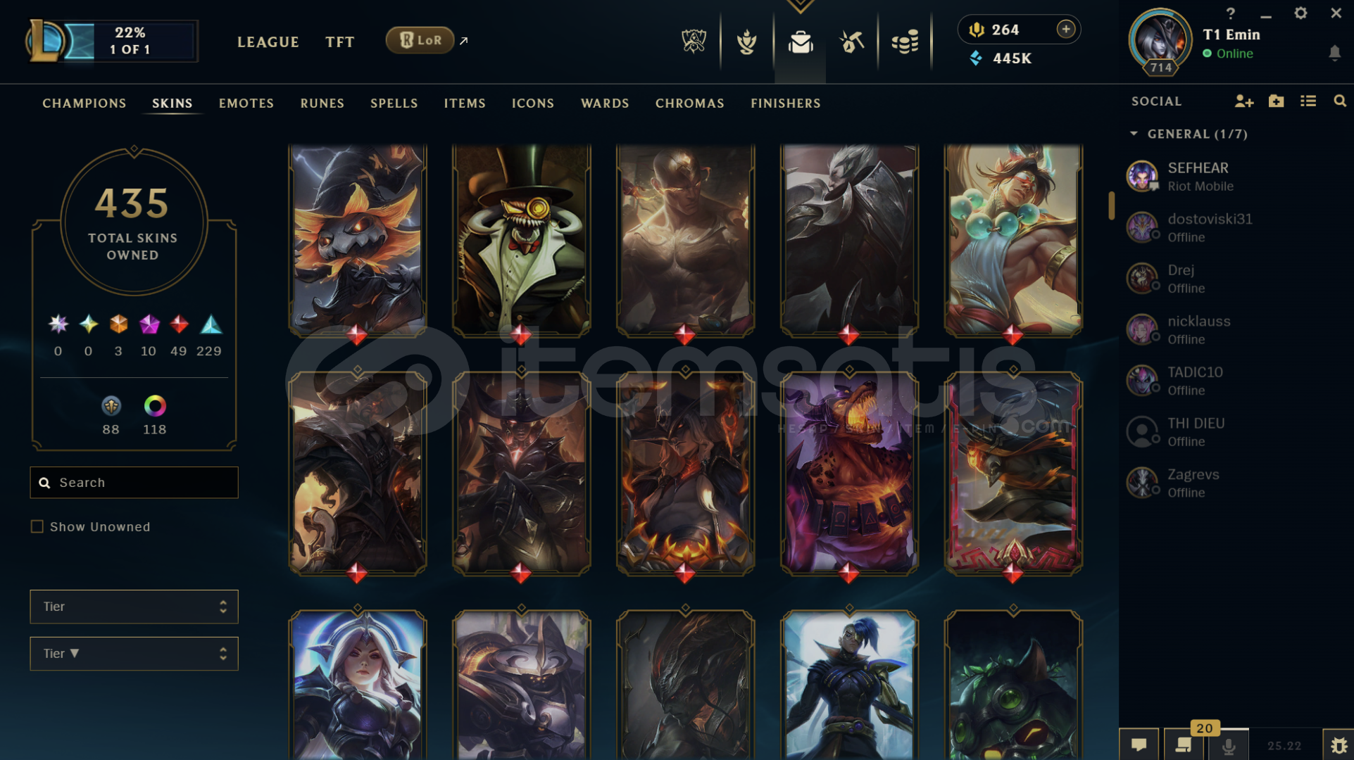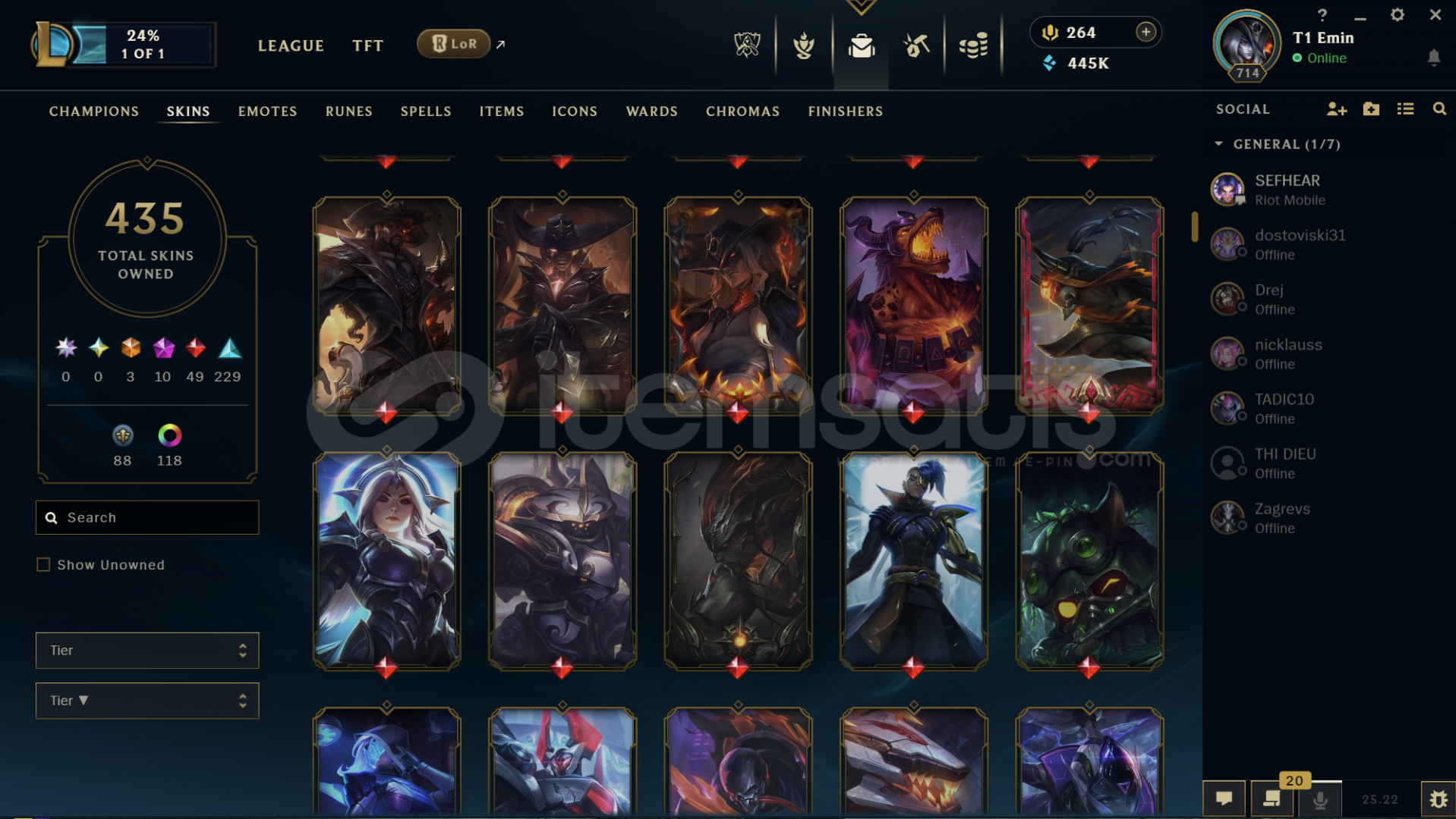 Hesapta bir çok kostüm vardır Diananın tüm kostümleri açıktır. 445K Mavi öz ve ganimette 70 tane Kostüm vardır hepsi en az 1350 değerinde 2500 turuncu öz bulunmakta. Hesapta 118 Kostüm Rengi , 41 tane Totem Görünümü , 323 Simge vardır.