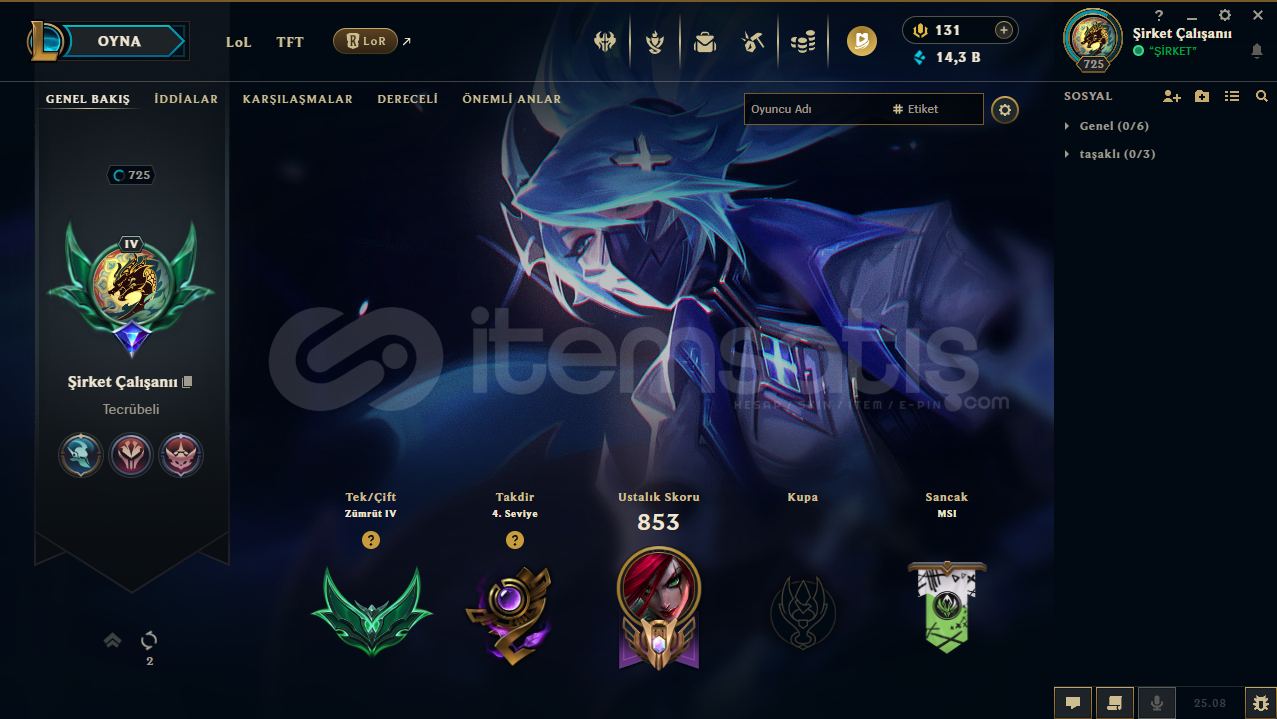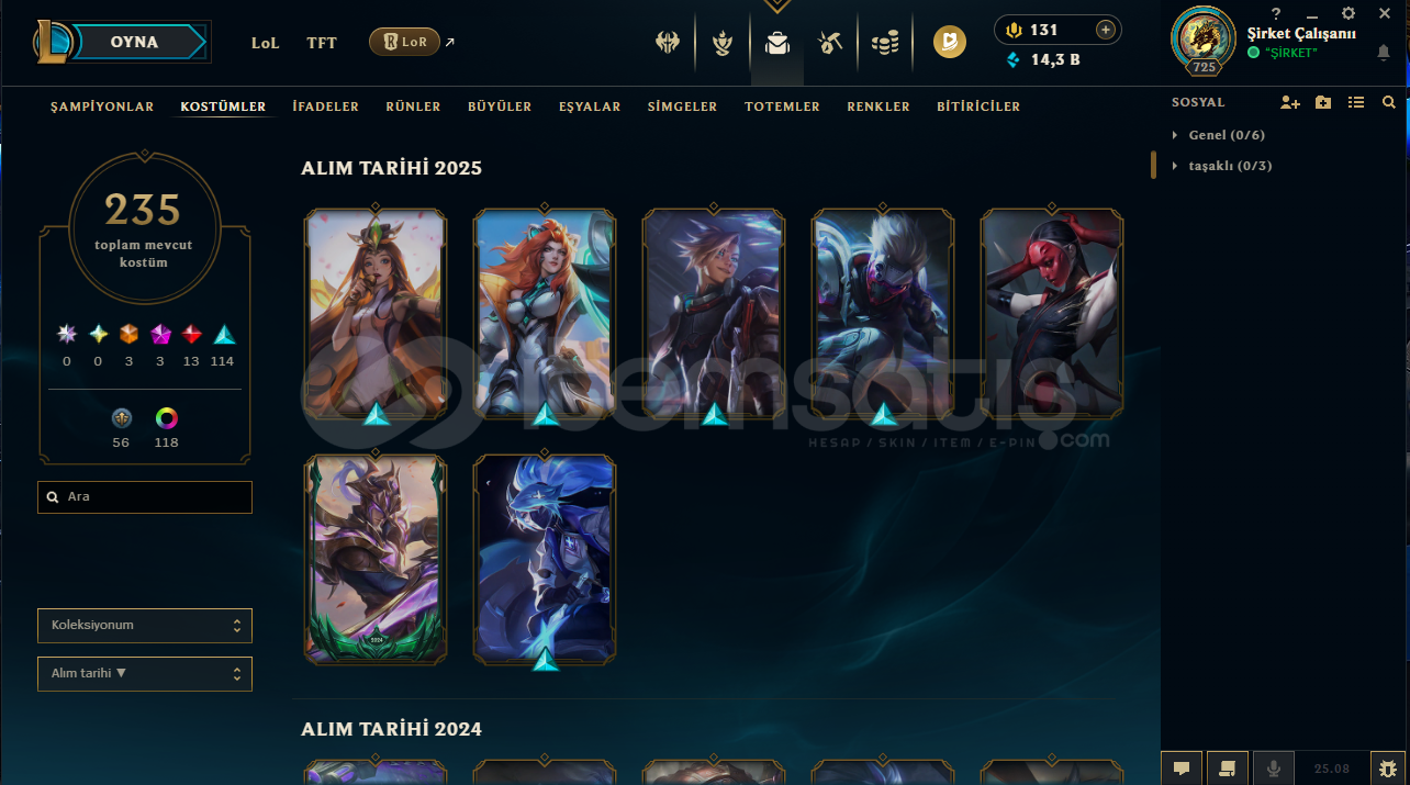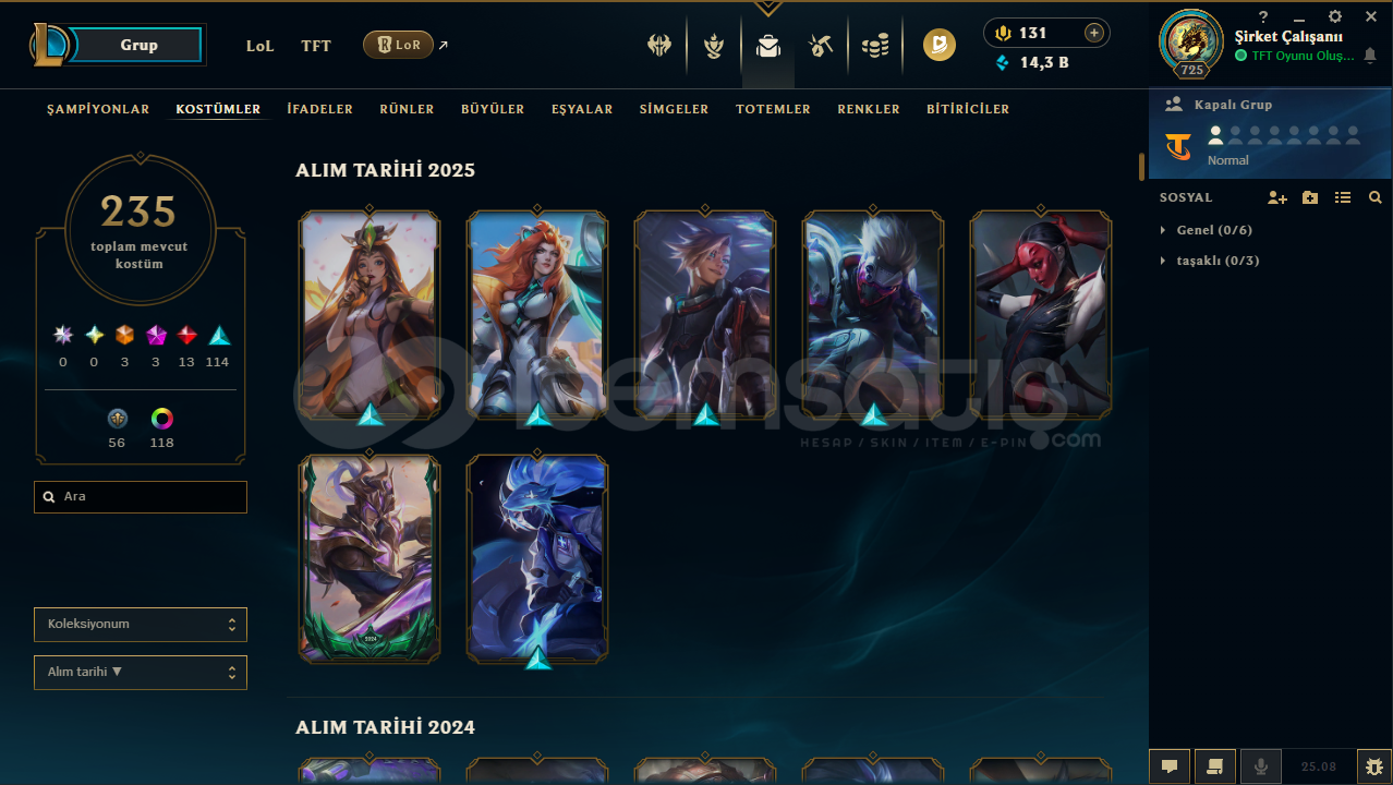 725 LVL 235 KOSTÜM ZÜMRÜT LOL HESAP