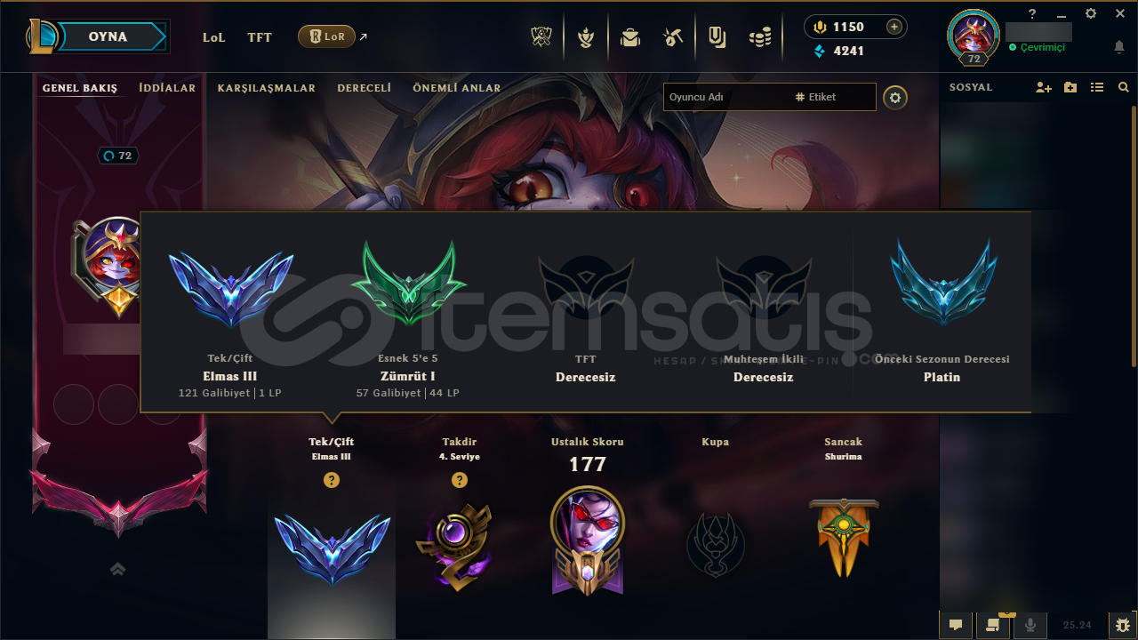 hesap içeriği görseldedir kendi main hesabımdınick değiştirme hakkı var şu anmaille teslim edecegim tabii kigeçen sezon battle passini aldım + 1150 rp ve 122 ihtişamlı öz var