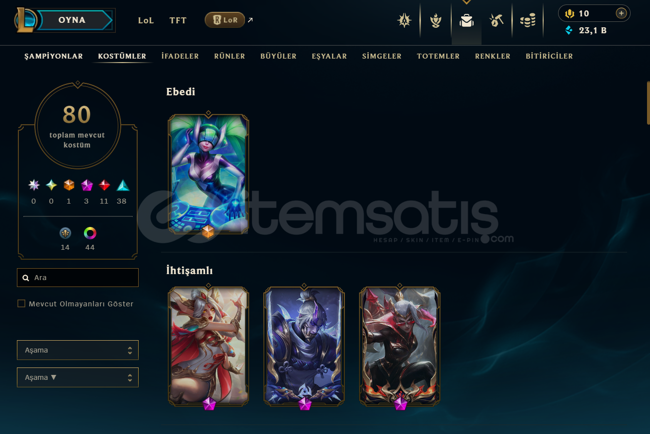 Tamamen elden emekle hazırlanmış, dengeli ve keyifli bir hesap.Boost veya bottan geçmemiştir — handmade ve organik bir şekilde geliştirilmiştir.📊 Bilgiler:🎯 SoloQ: Emerald II⚔️ Flex: Diamond III👕 Kostüm Sayısı: 80🧩 Mainlik.🔒 Teslim: Güvenli ve sorunsuzHesap uzun süredir aktif, içeriği zengin ve tamamen oturmuş durumdadır.Kostüm çeşit...