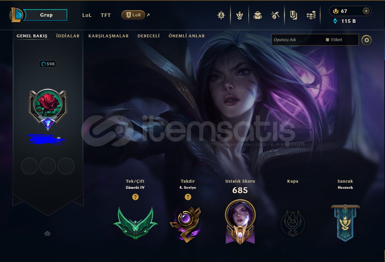 Tft hesabı da oldukça doludur hesabın mmr yüksektir 20 winde zümrüt 4