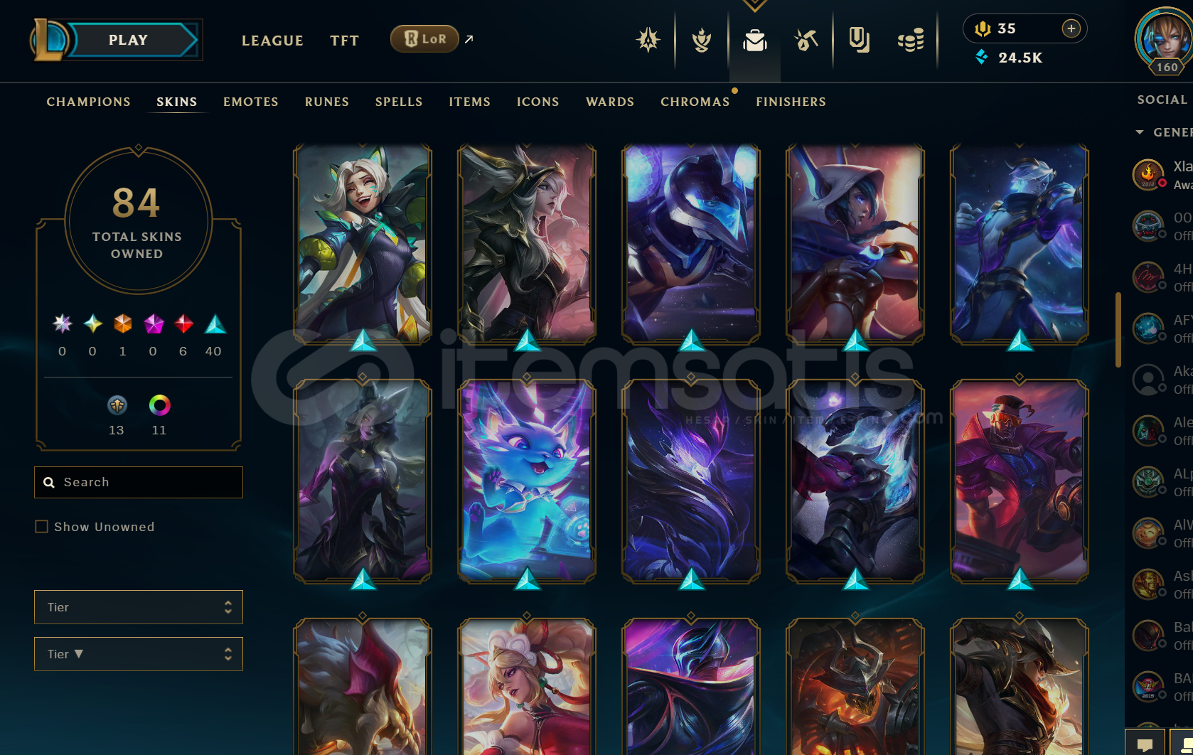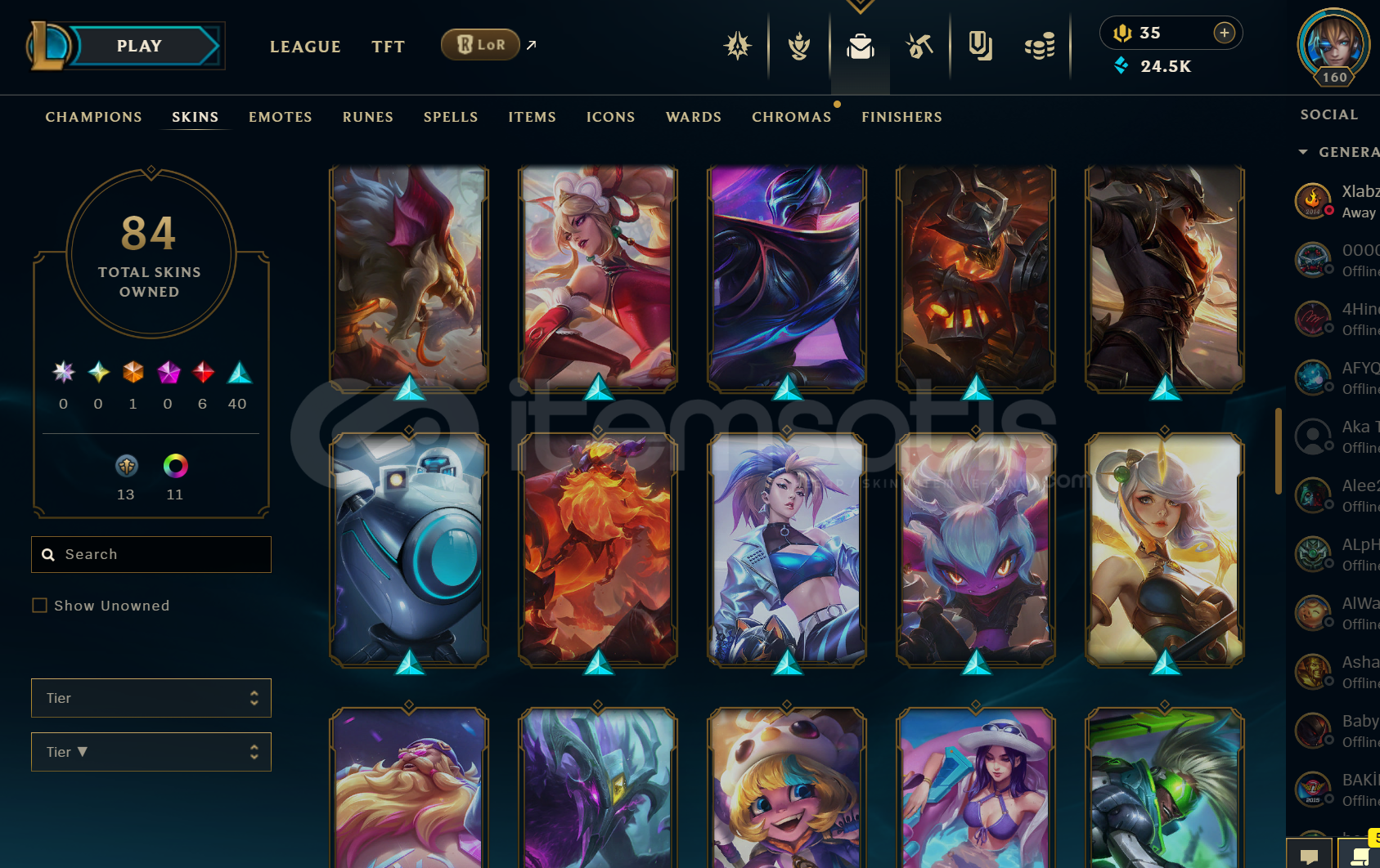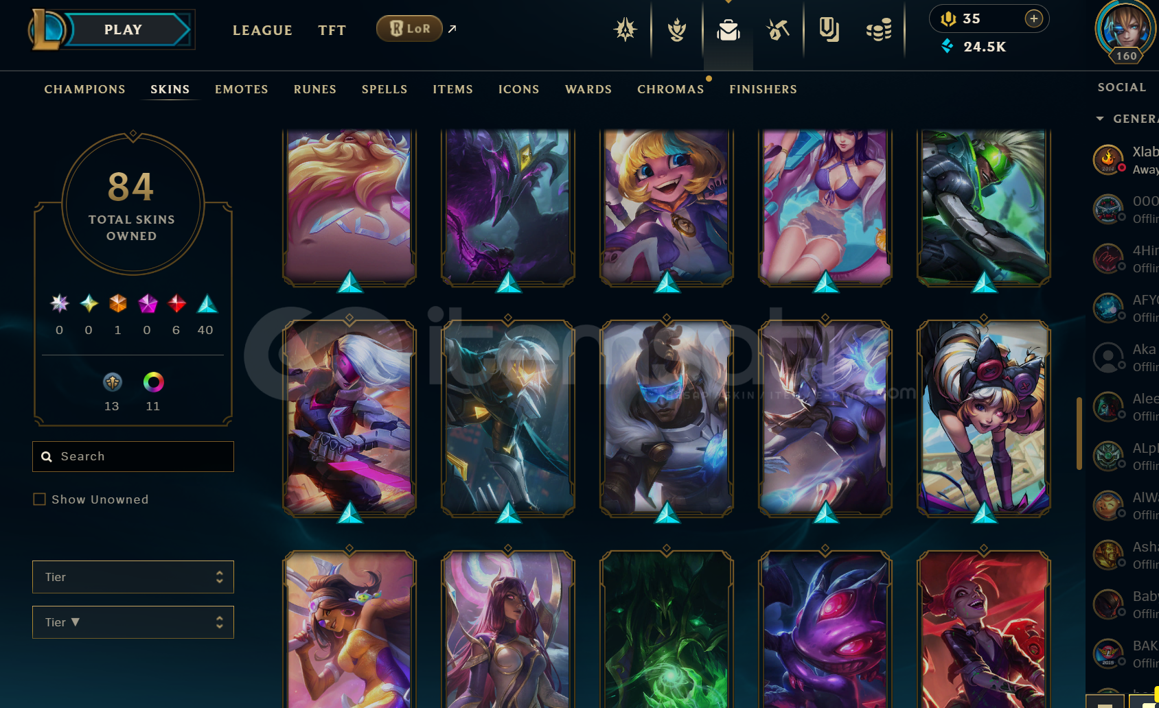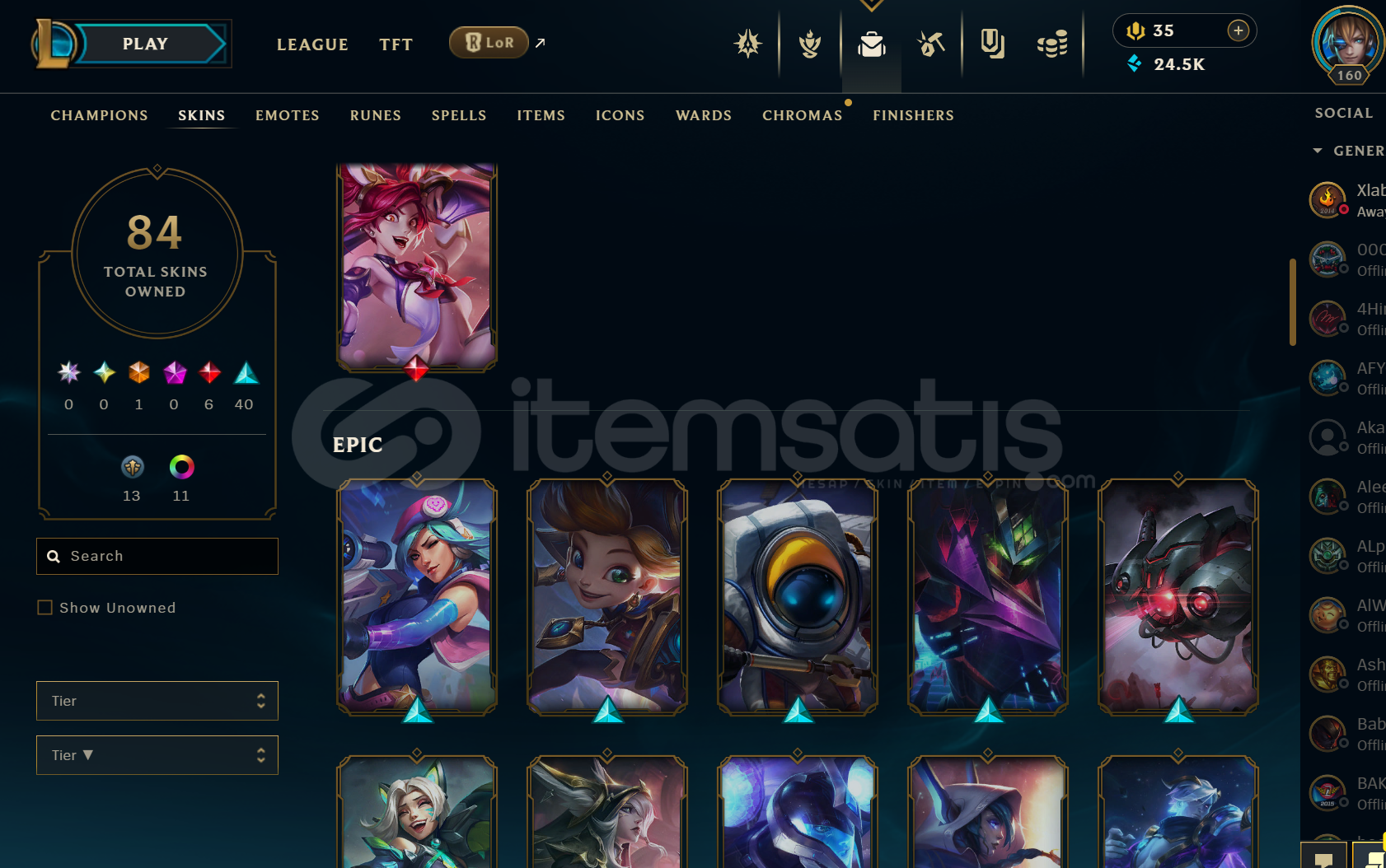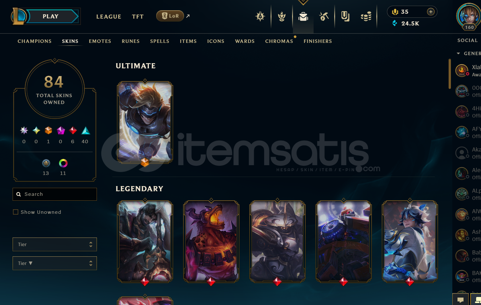 84 kostüm,150 şampiyon ve 24.5K mavi öz mevcut.