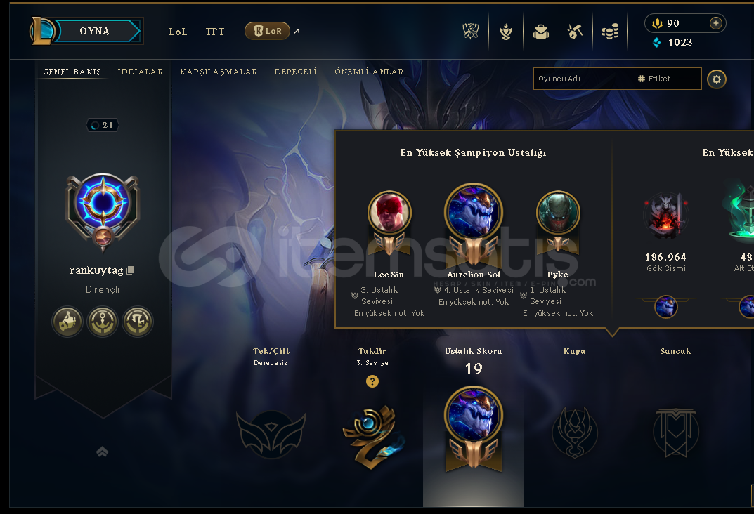 9 Kostümlü 23 Seviye Aurellion Sol main HesapÇarın 2 ebedisi açıktır + 1 adet aurellion sol renk paketi vardır her şey fotoğrafta görüldüğü gibi