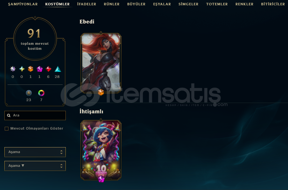 90 KOSTUMLU YUKSEK MMR LOL HESABI