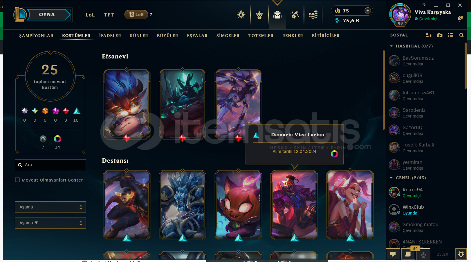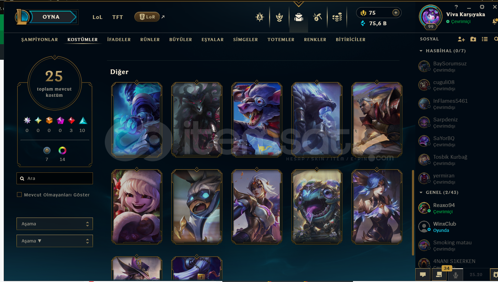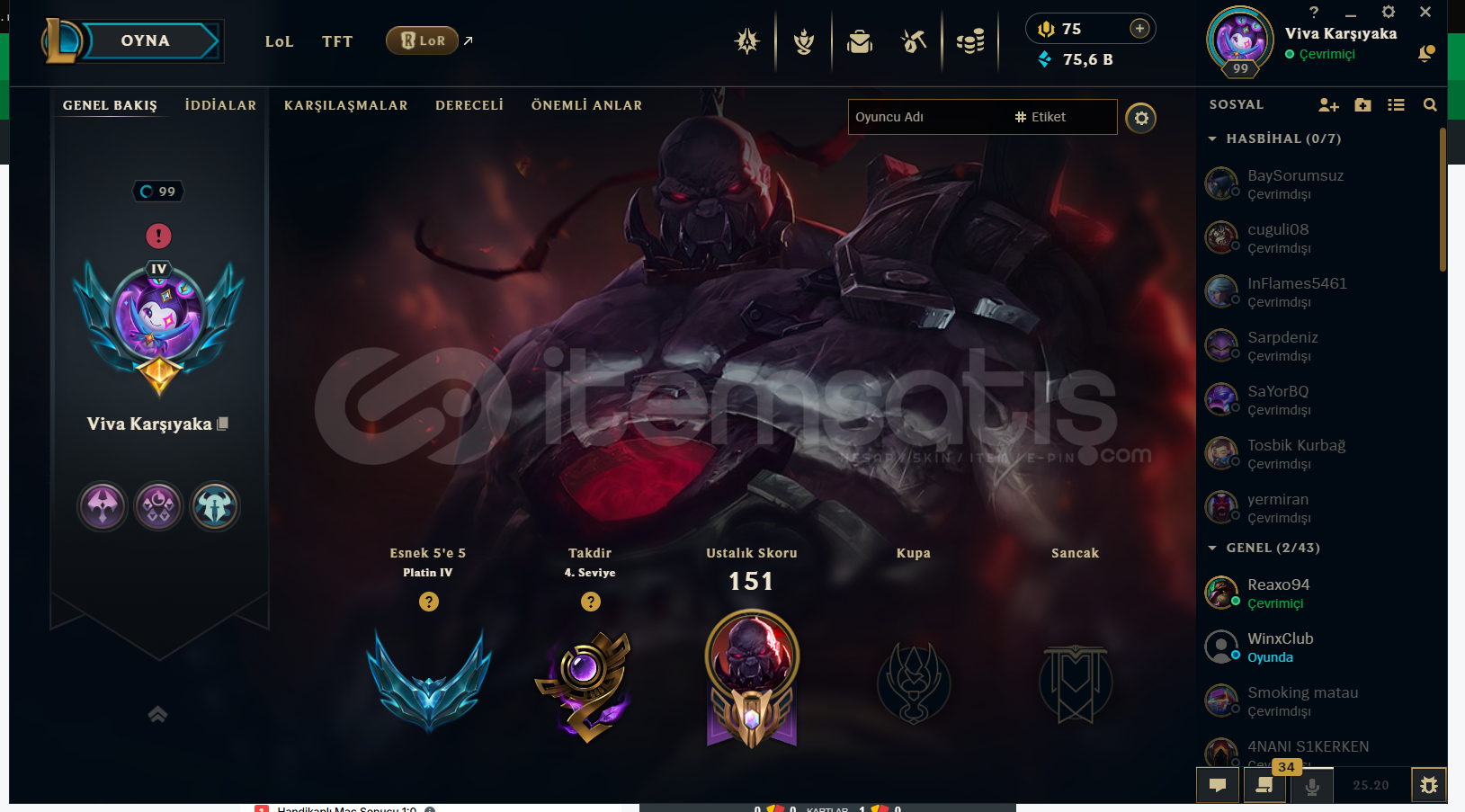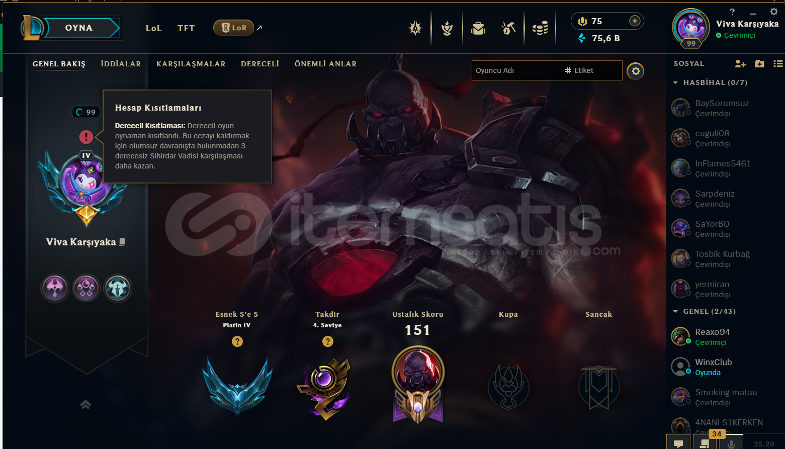 hesapta 350k sion vardır ve güzel skinler var plat 4 cok saglam lp geliyor mail değişimi yapılcaktır 3 maç ranked banı vardır 80k mavi öz vardır