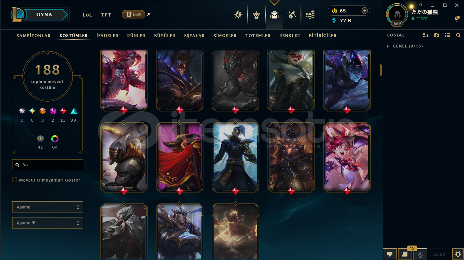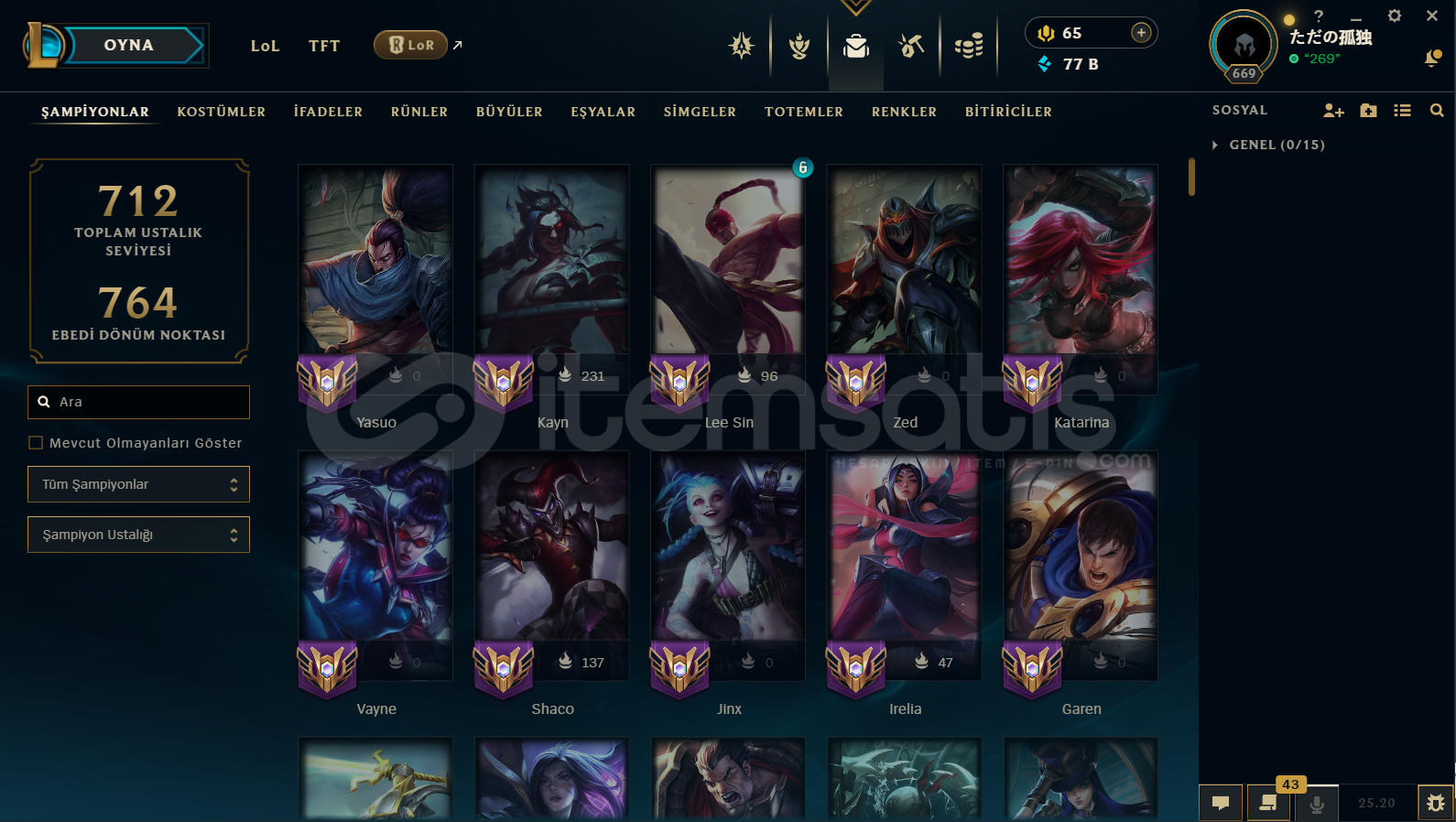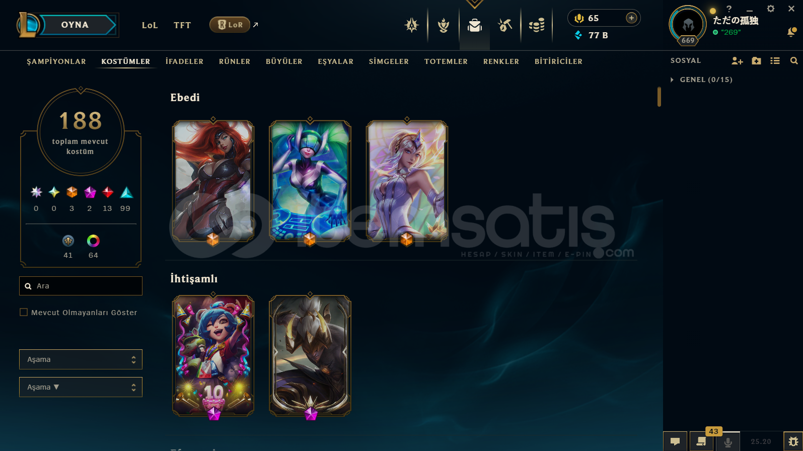 ACİL SATILIK 669 LVL LEAGUE OF LEGENDS HESABI