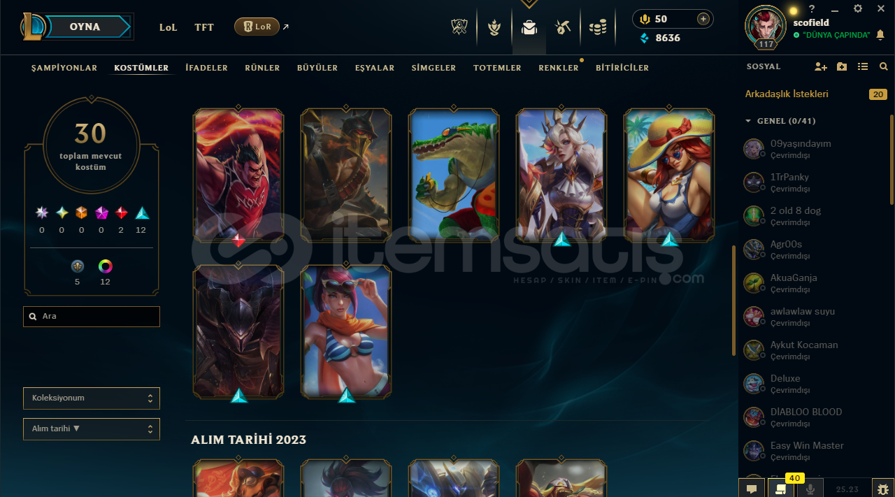 PAZARLIK YOKTUR UYGUN FİYAT ZATEN30 SKİN VE HEPSİ PAHALI MAİNLİK HESAP