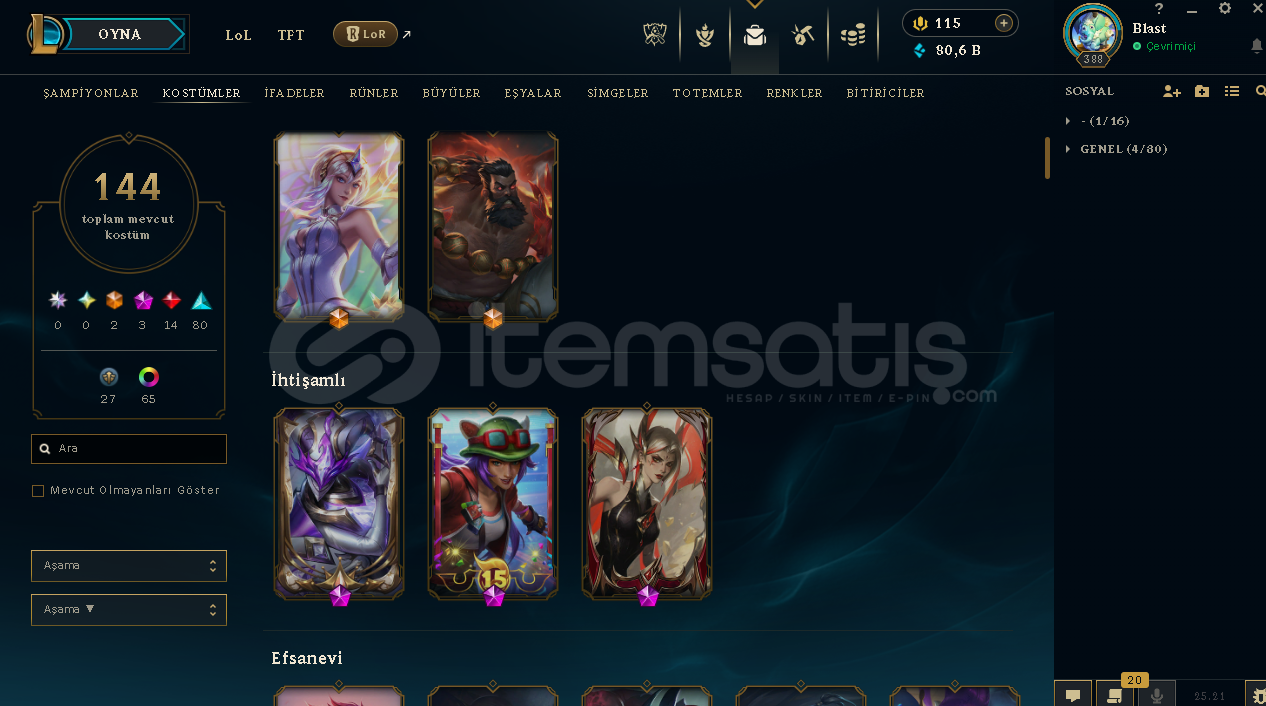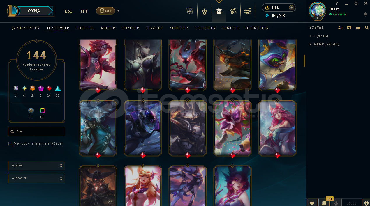 Lol hesabı 393 level 370K+ Shaco Var. 144 Kostüm var.90bin mavi öz var.Valorant hesabı 290 Lvl. Hesapta Asil Karambit / Asil, Ejder Ateşi, Köken Vandal / İon, Yağmacı Sherrif / Ejder Ateşi operatör / Asil, Sihirpunk Spectre / Afet Ghost / Nöroateşleyici Classic / BlastX Phantom Var. Peak Dia 3 Şu anda Plat 3