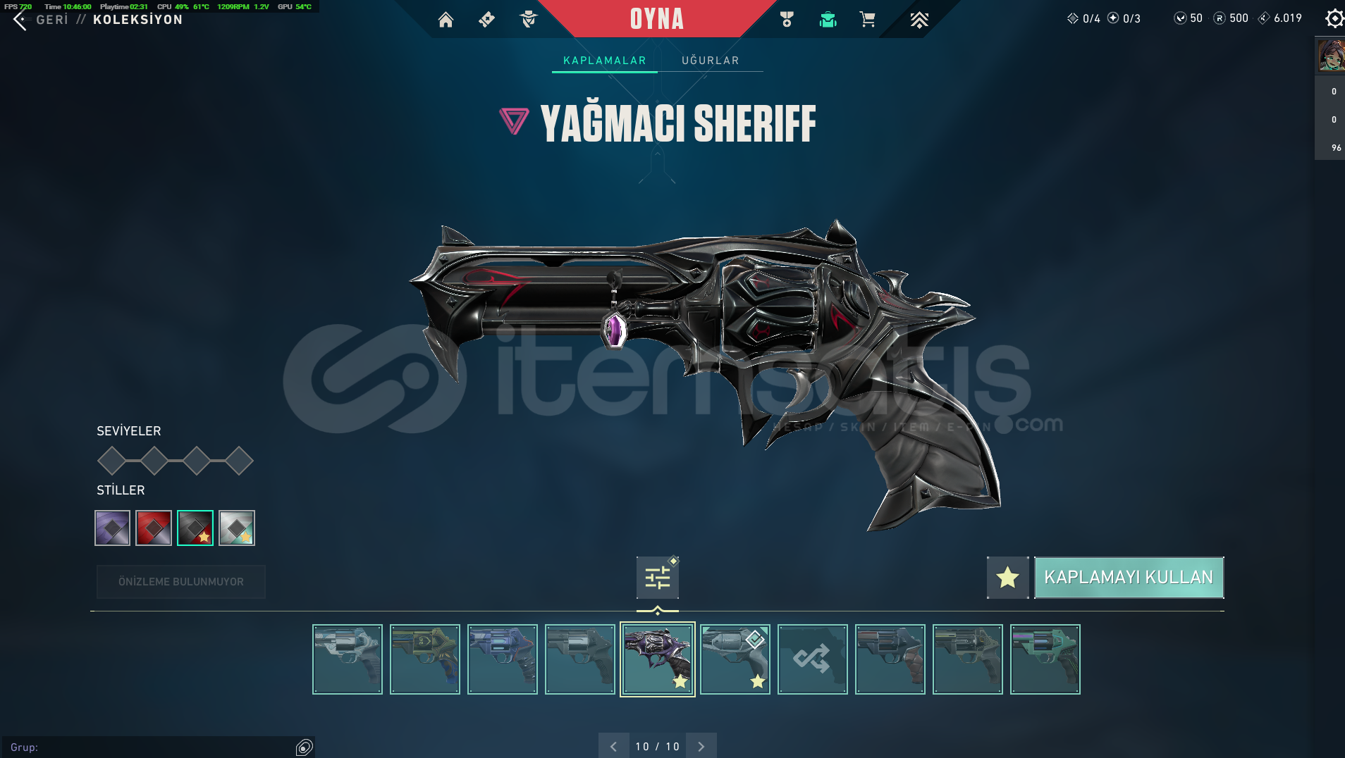 Valorant hesabı 290 Lvl. Hesapta Asil Karambit / Asil, Ejder Ateşi, Köken Vandal / İon, Yağmacı Sherrif / Ejder Ateşi operatör / Asil, Sihirpunk Spectre / Afet Ghost / Nöroateşleyici Classic / BlastX Phantom Var. Peak Dia 3 Şu anda Plat 3
