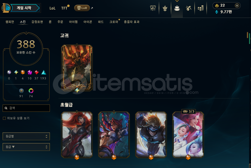 Çok Acil ihtiyaçtan satılıktır pazarlık yapılır40000 RP lik mordekaiser kostümü vardırmail değiştirilecektiroldukça doludur kostümü olmayan şampiyon çok azdırkeyifli güzel kostümler vardır resimlerde görüldüğü gibidestansı kostüm çok olduğundan koyamadım buraya