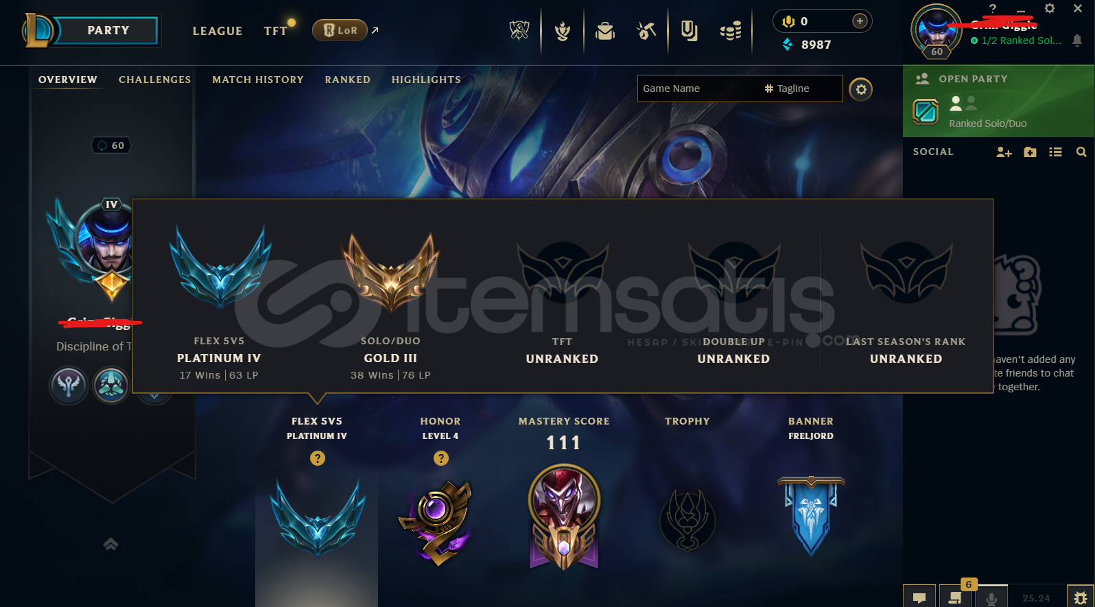 ADC/SUP MAIN PLAT ELO 60 SEVIYE 9K ÖZ efsanevi ashe kaisa morgana vs vs