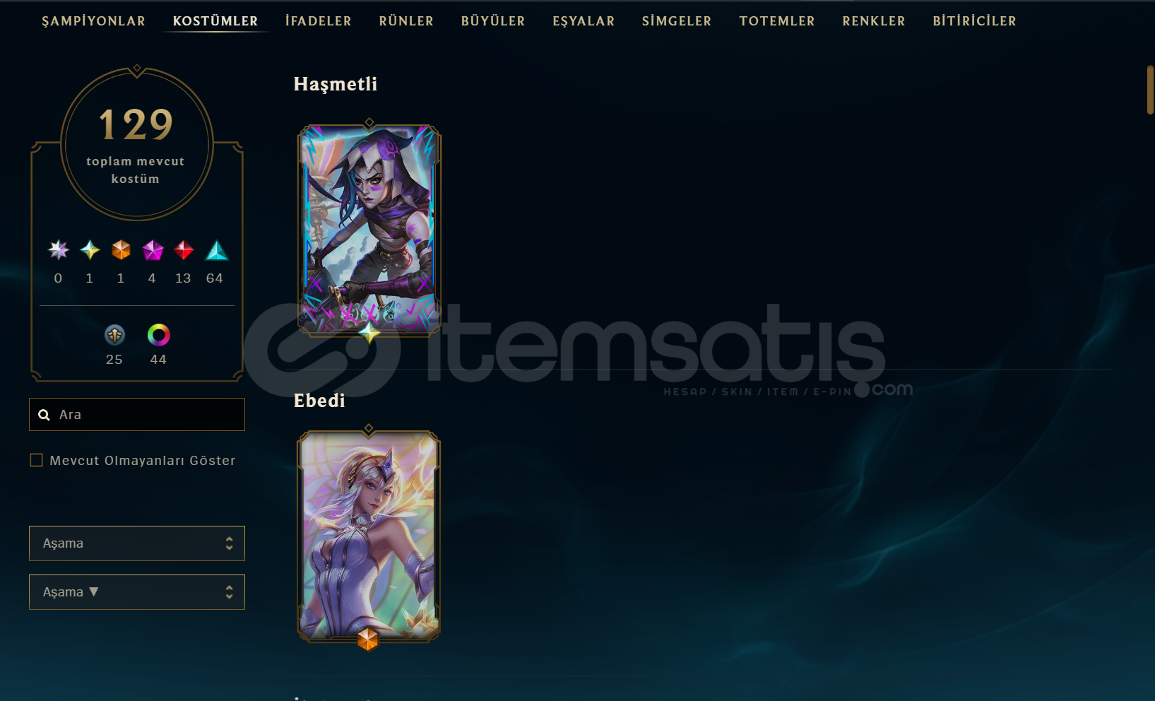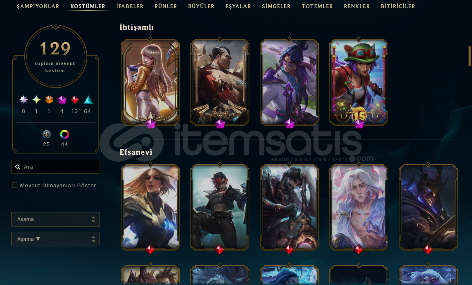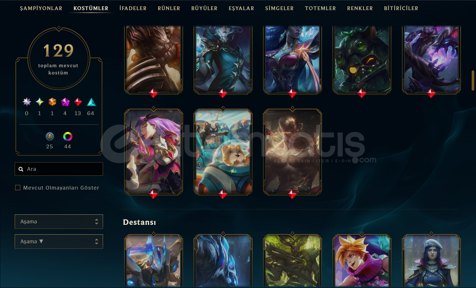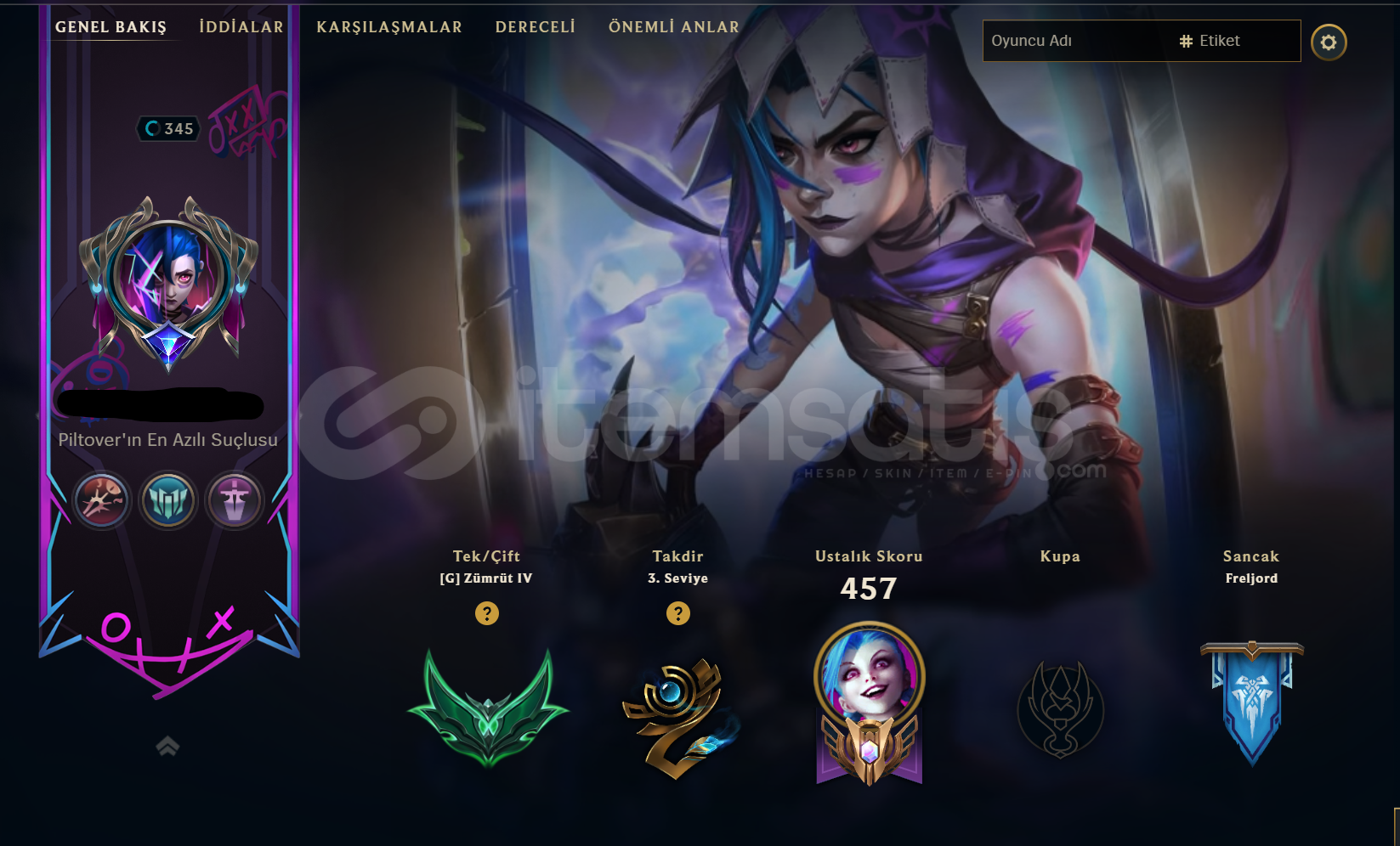AŞIRI NADİR ARCANE PARAMPARÇA JİNX'lİParamparça jinx çerçeveli, profil fotolu, bitiriş animasyonlu ve sancaklı. (direkt set alınmış)1 Edebi Kostüm mevcuttur --> Elementalist lux4 İhtişamlı Kostüm mevcuttur ---> Prestij K/DA Kai'sa, Prestij Muzaffer General Darius, Prestij Ruh Çiçeği Master Yi, Siveemo13 Adet Efsanevi Kostüm ve 64 Destansı kostüm vardır.Arcane: ...