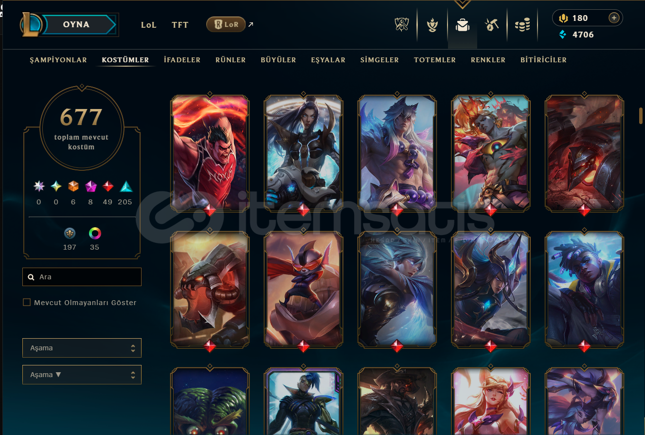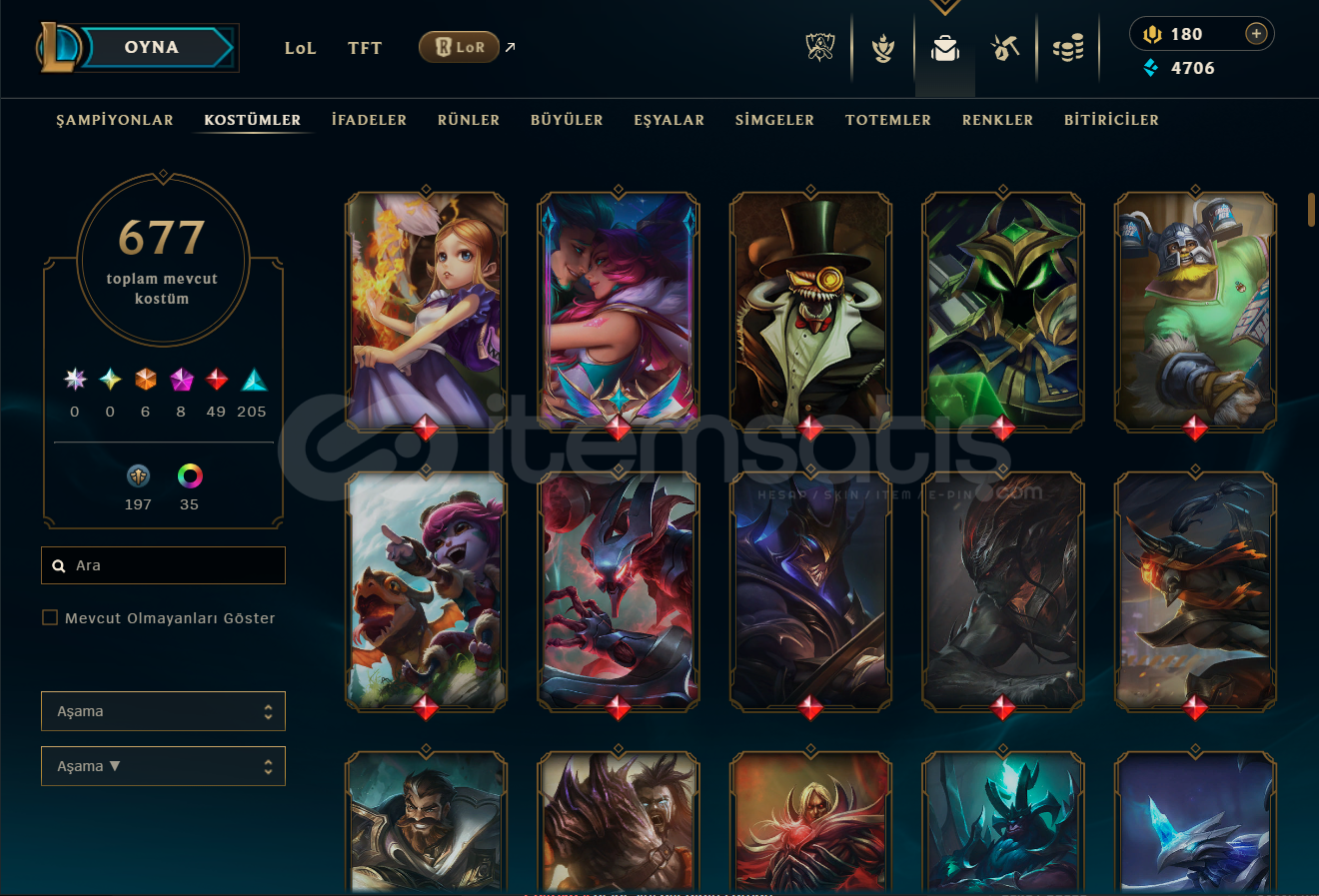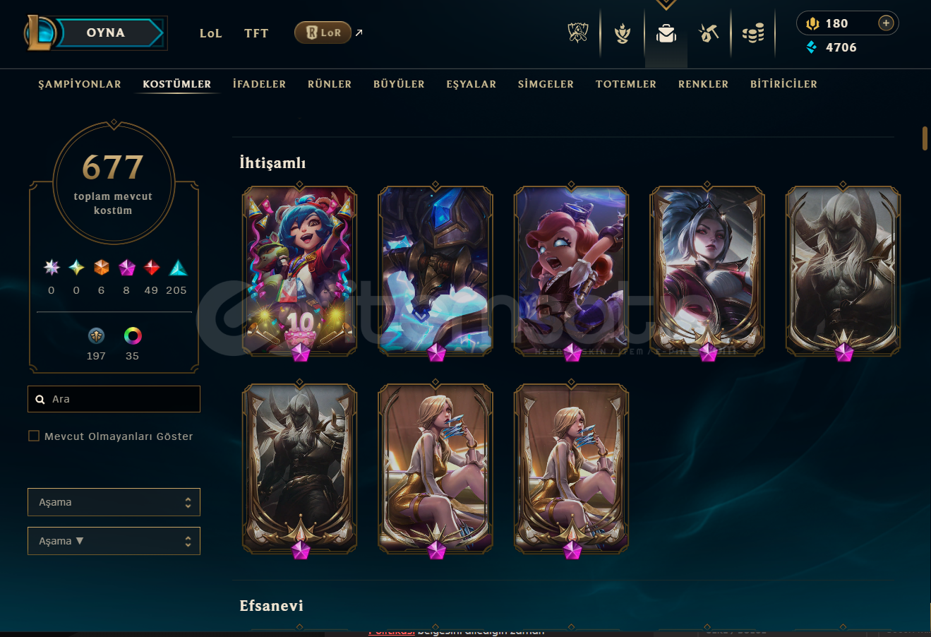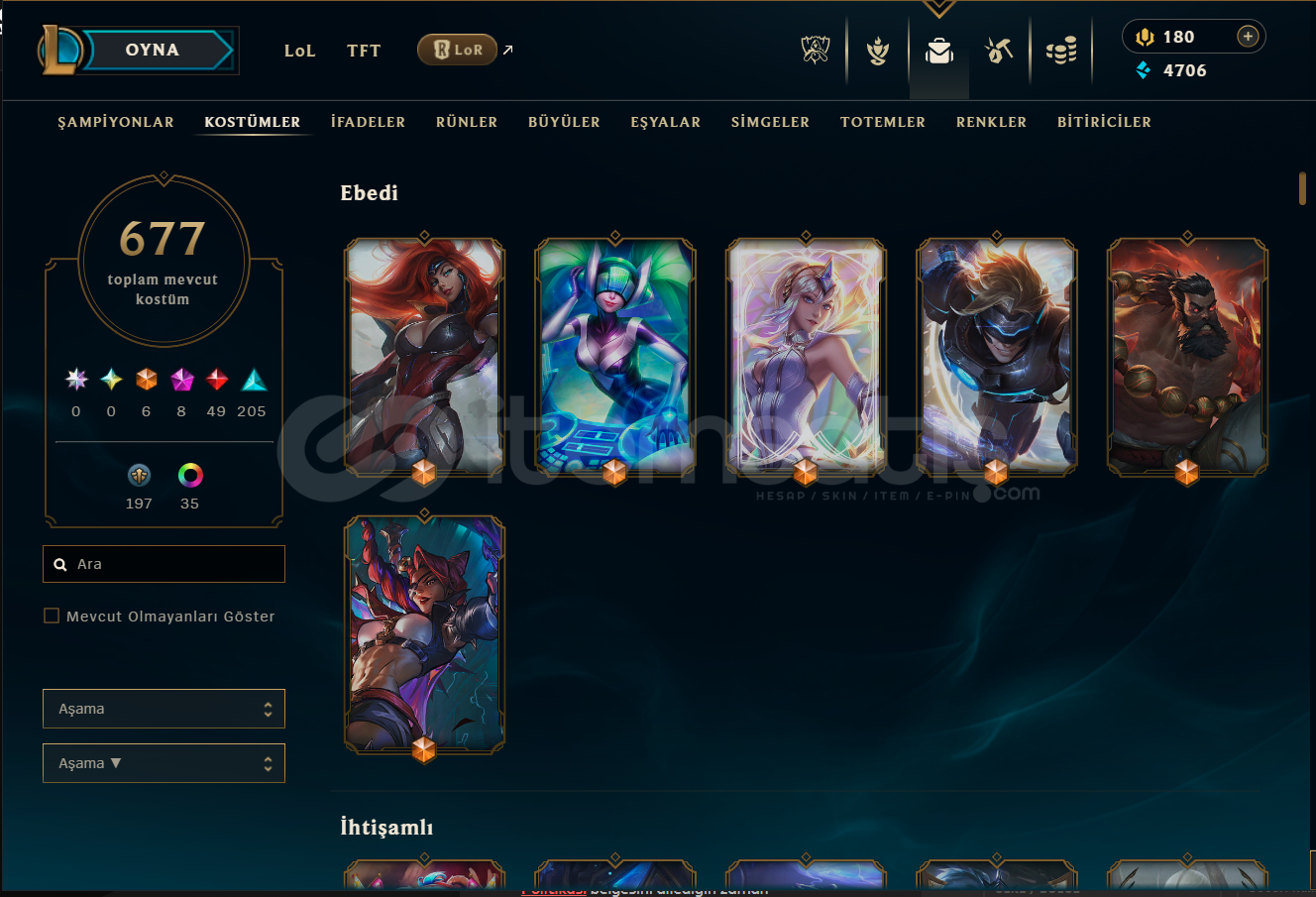 677 adet kostüme sahip olup derecesi yoktur.Sıfırdan rank kasıp istediğiniz kostümle oynayabilirsiniz. İhtiyaç nedeniyle satıyorum.Şimdiden alıcısına hayırlı olsun.