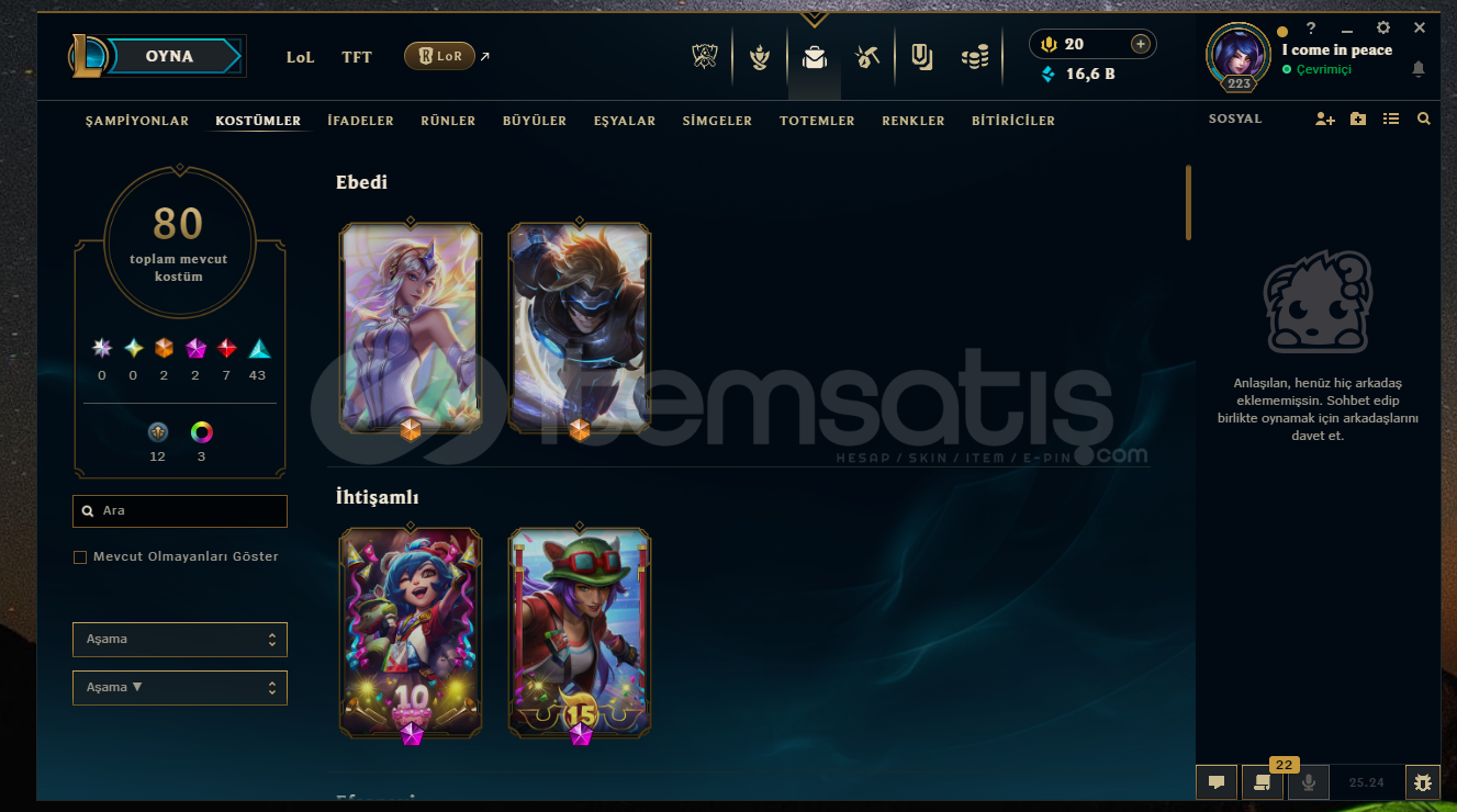 bol kostümlü low elo hesap