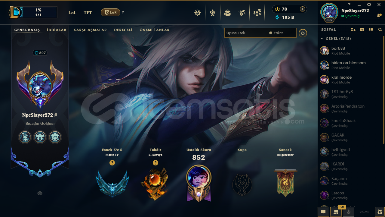 BOL SKİN VE RENK PAKETİNE SAHİP PLAT HESAP