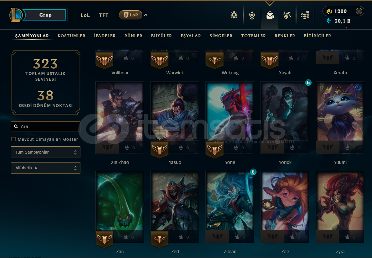 Kendi hesabımdır tüm bilgileri ile verilecektir.Hesapta :2 adet ışıltılı kostüm 5 adet ebedi kostüm 19 adet ihtişamlı kostüm 61 adet efsanevi kostüm193 adet destansı kostüm olup toplam 321 kostüme sahiptir.TFT hesabı doludur. TFT'de :Dizginsiz Arcane Jinx . Dizginsiz Yüce Kral Garen . Dizgisiz Kozmik Karanlık Jhin . Dizginsiz Kod Adı VayneDizginsiz Arcane Warwick ve çok daha fazlas...
