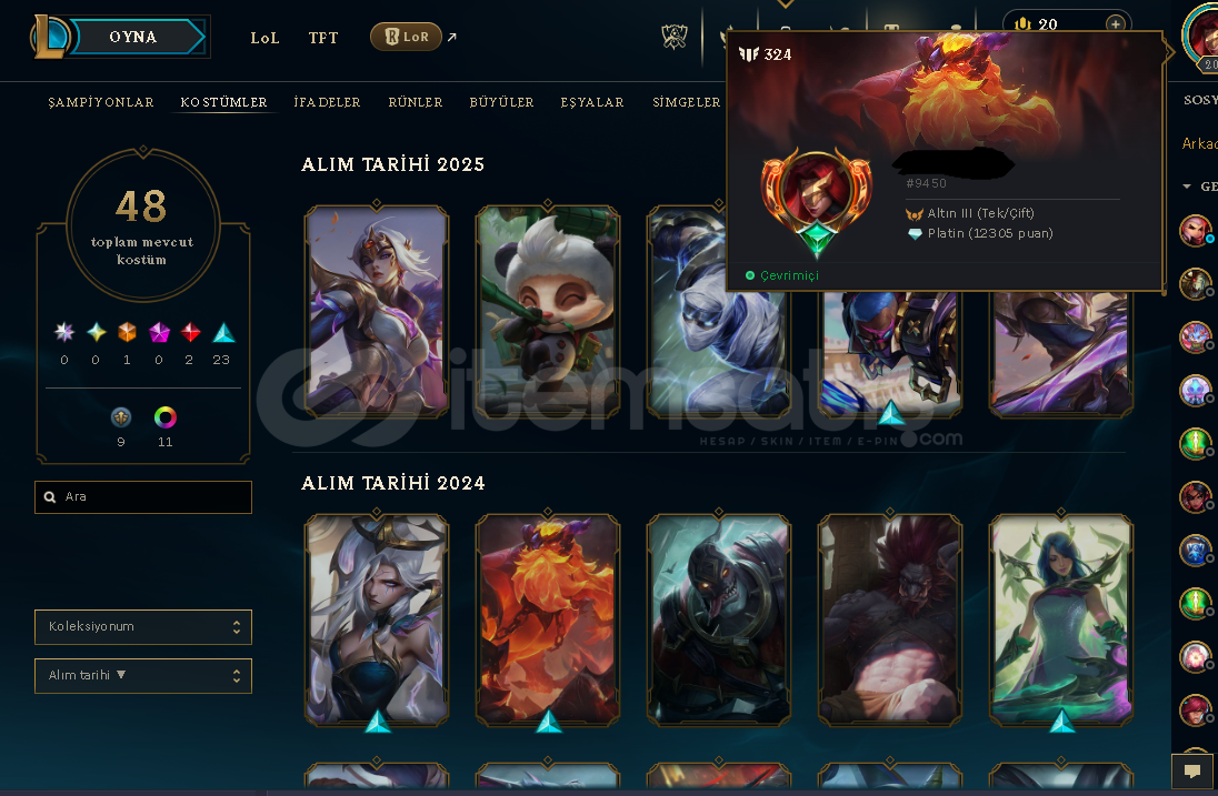 HESAP 204 SEVİYEDİR48 KOSTÜM MEVCUTTURRANKI PLATİNDİR42 K MAVİ ÖZ MEVCUTTURHESABIN MAİL VE TELEFON NUMARASI PATLAKTIR ERİŞİM İMKANSIZDIRALANA HAYIRLI OLSUN:)
