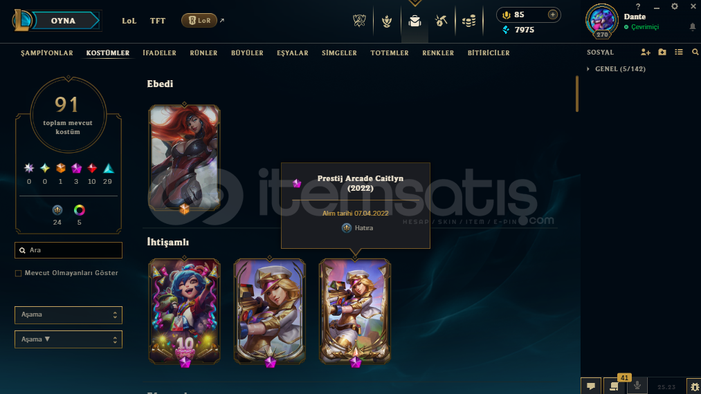 HESAPTA DEĞERLİ KOSTÜMLER MEVCUT2016 2017 YILINDA ALINAN BİRÇOK KOSTÜM VARESKİ HESAPOTOMATİK TESLİMAT GİRİŞ BİLGİLERİNİ OTOMATİK ALACAKSINIZ.MAİL DEĞİŞİMİ YAPILACAKKULLANICI ADI-ŞİFRE-MAİL İLE TESLİM EDİLECEK.Hesap 1 kişiye satılmaktadır.İade Şartları:Hesaba girmeden video çekmeniz gerekmektedir.Alttaki durumlar...