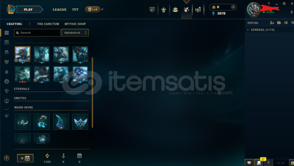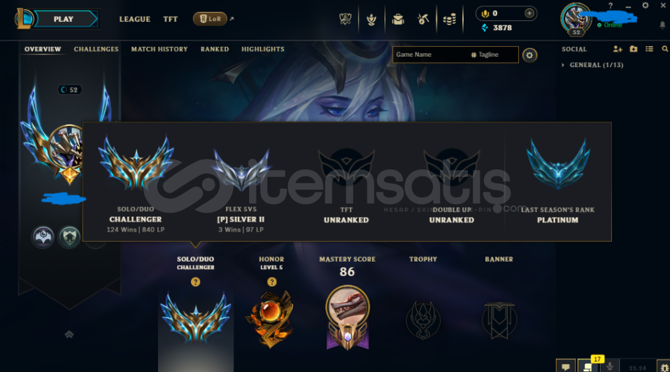 Hesabın güncel LPsi 840Takdir seviyesi 5Mavi öz miktarı 3878Kostüm sayısı 12Hesabın seviyesi 52İsim değiştirme hakkı mevcutMail değişimi yapılacaktırHesap mid mainSoru sormak için yazabilirsiniz