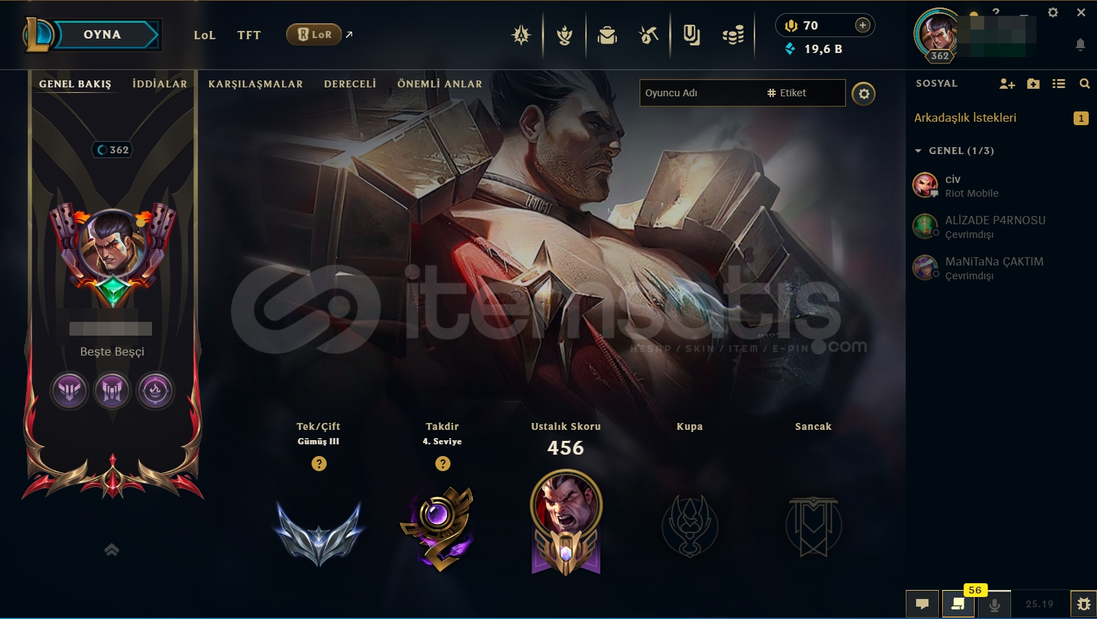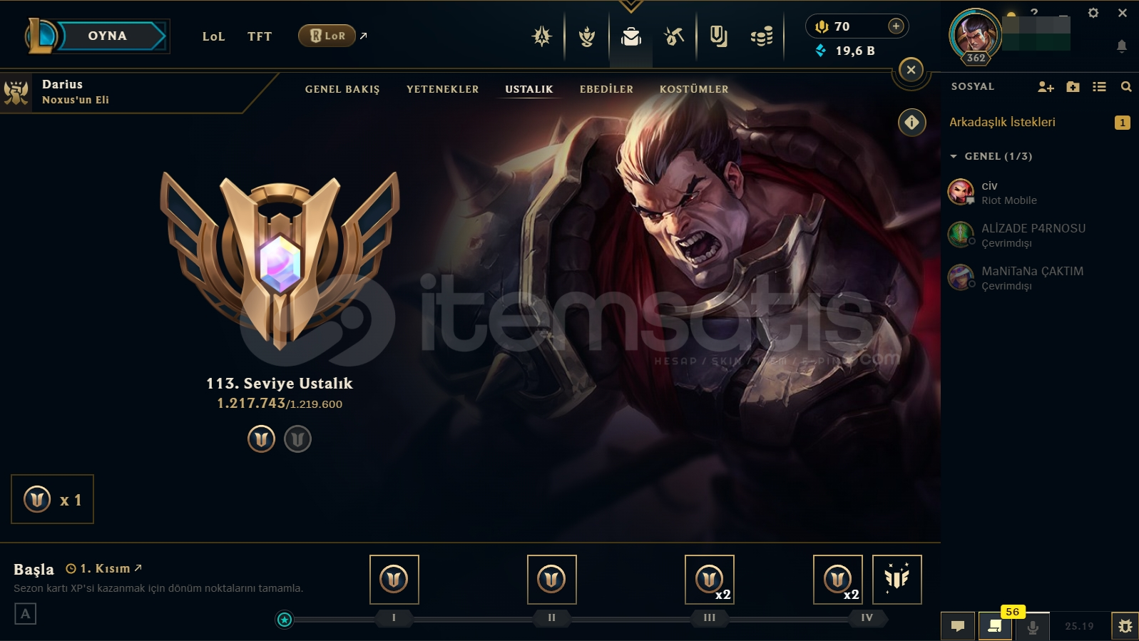 Gerçek bir Darius OTP oyuncusu için hazırlanmış, prestij değeri yüksek, nadir koleksiyon hesabı.
