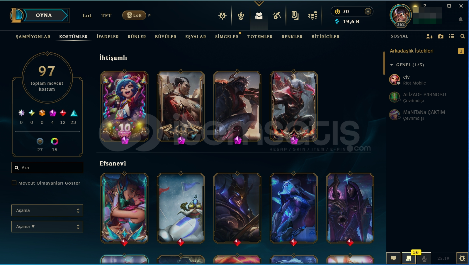 🔥 OTP hesaplar keyif içindir, “skin hero ligi” için alınmaz. 💸 Cebinde keyfine ayıracak parası olmayan, boş muhabbet için yazmasın. ⚔️ Mainlik hesaplar zor kasıldığı için bu tarz OTP hesaplar çok az bulunur ve değerlidir.