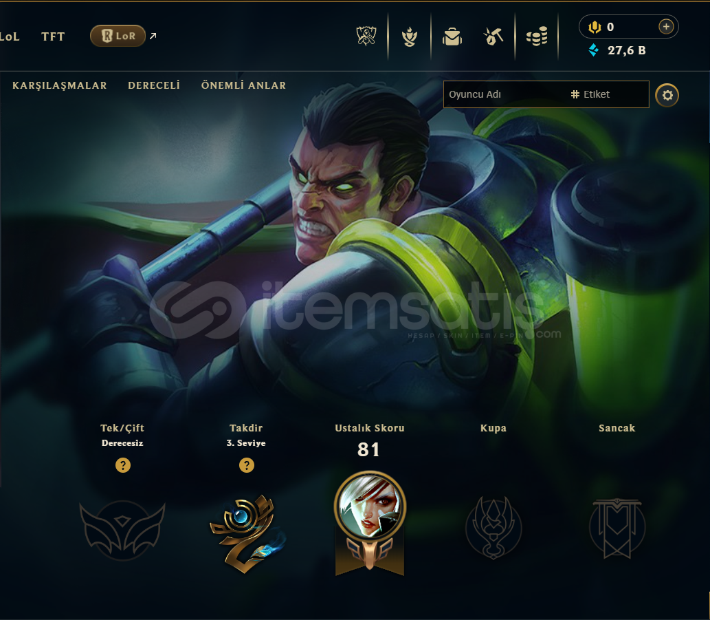 Hesap eski kurulum hesaptır ban yemez . hesap sizin mailinize kaydedilecek . Dereceli hazır ve hiçbir ban yok . Hesap 30 Level Unranked ve Fresh daha önce dereceli atılmadı . Bol mavi öz mevcut . 7/24 sorunsuz teslimat . İsim değiştirme hakkı mevcut . Alana hayırlı olsun .