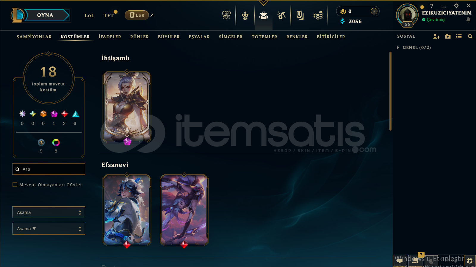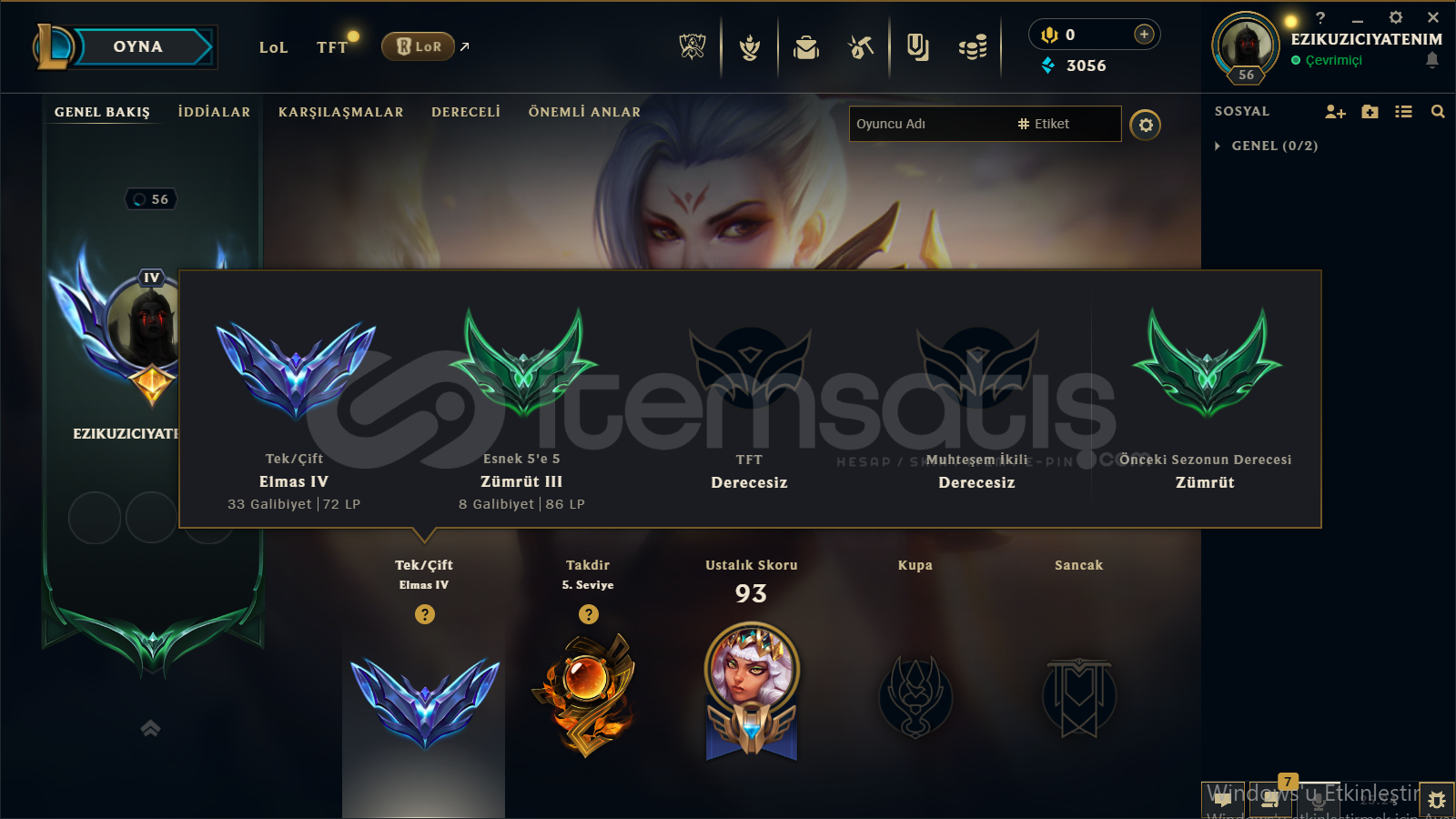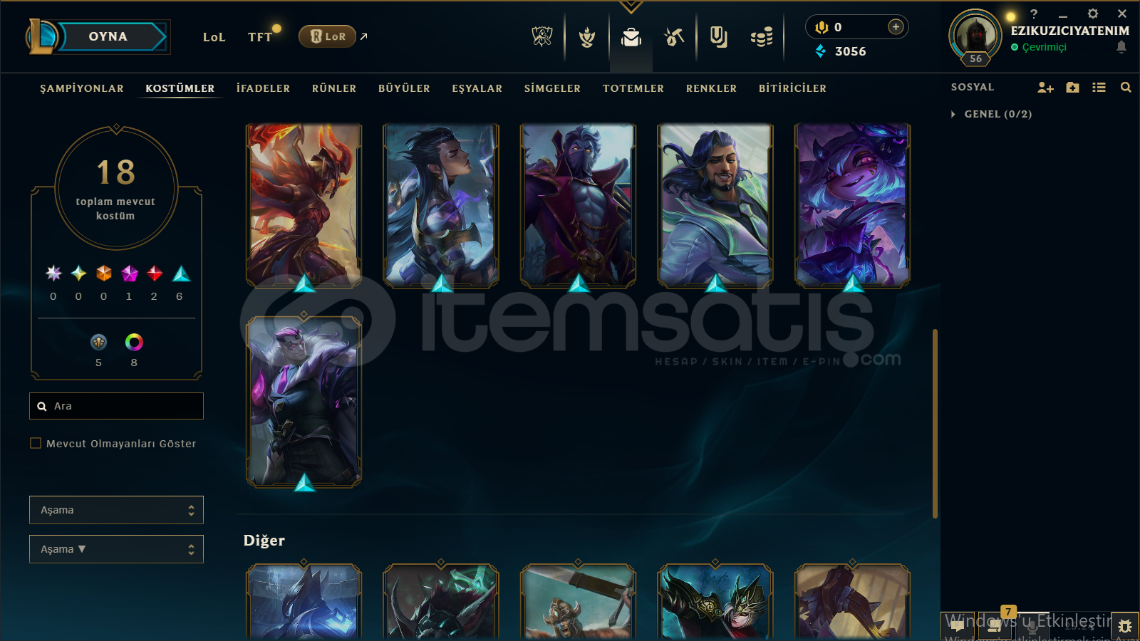 merhaba hesap dia 4 az maç atılmıstır 18 19 lp gitmekte 19 tane kostum +1 ganımet 5 sevıye takdir mevcut kolay kolay ban yemezsınız güzel hesaptır alıcısına hayırlı olsun prestij riven bulunmakta çerceve setlerıyle mail degişimi olucaktır otomatık teslımat koydum 7 24 alabılırsınız bilgiler size ulasıcak plat zumrut parasına dia 4 72 lp
