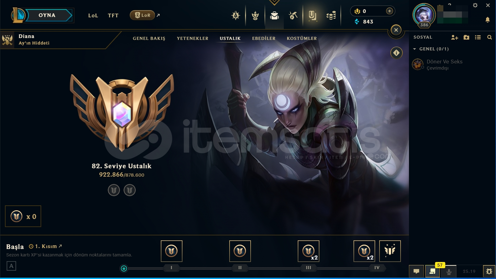 Gerçek bir Diana OTP oyuncusu için hazırlanmış, koleksiyonluk seviyede özel hesap.