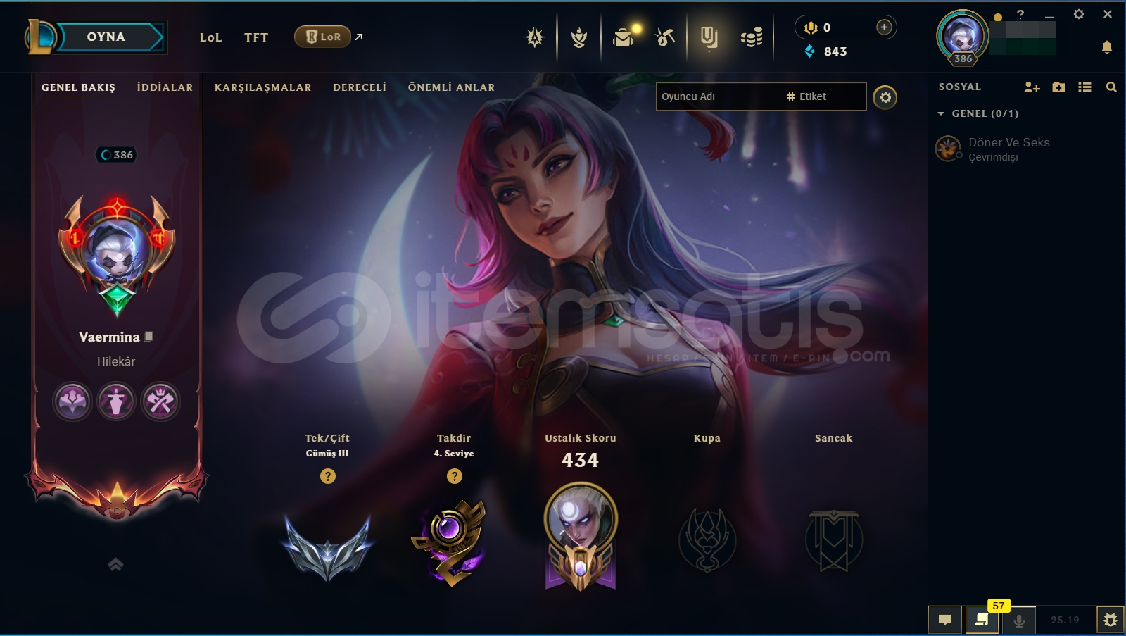 🌙 DIANA OTP KOLEKSİYON HESAP | 920.000 USTALIK PUANI | TR GÜMÜŞ 3 🌙💎 Hesap Özellikleri