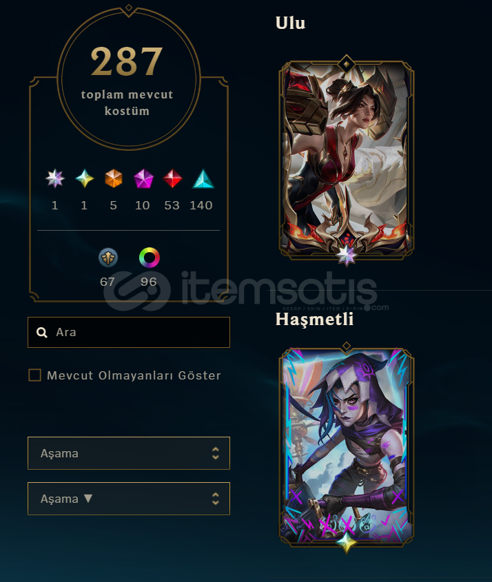 287 kostüm tüm arcane kostümleri cait ekko warwick haşmetli renk paketlerivahşi batılı senna ihtişamlı renk paketitüm çarlar açık 132k mavi öz var